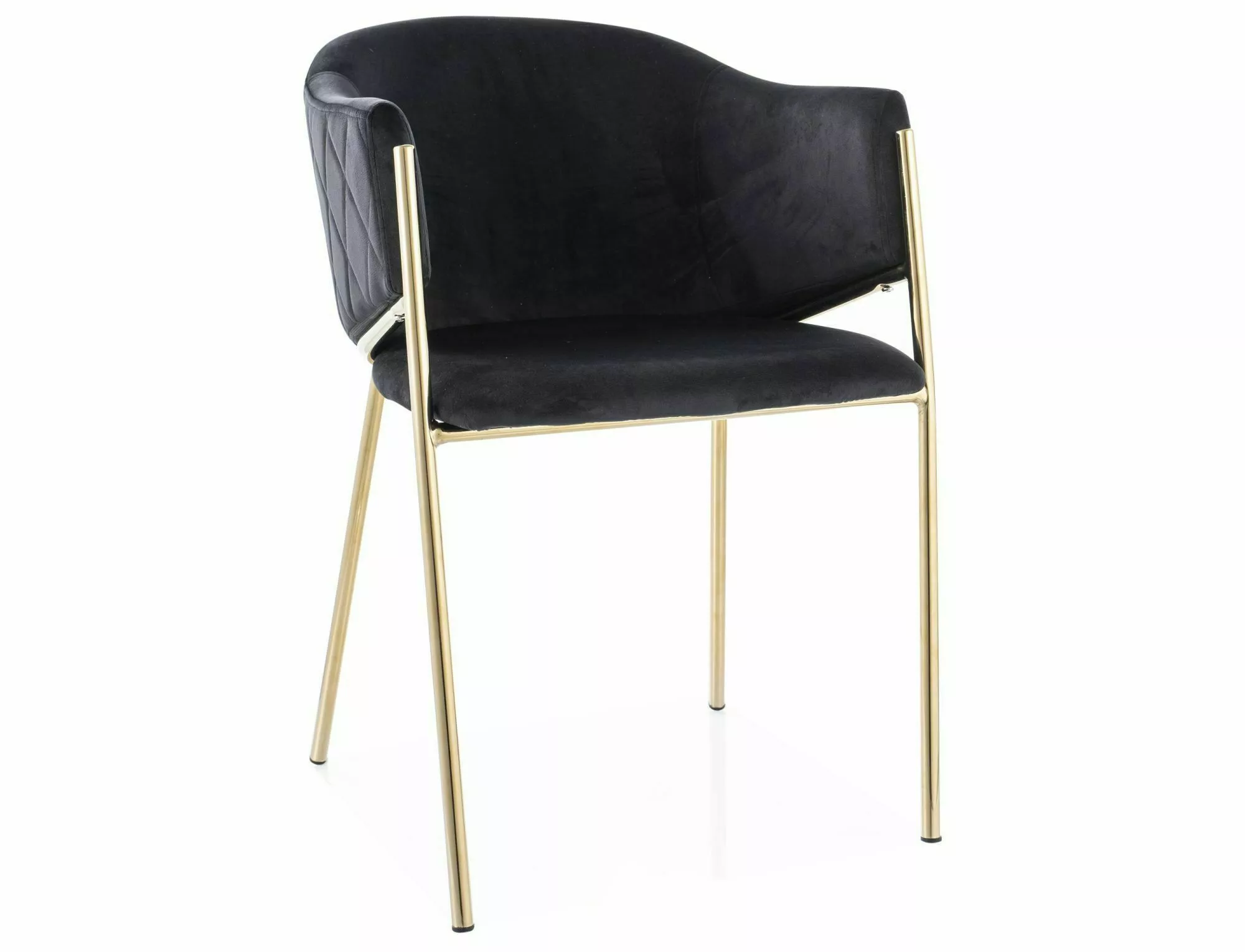 Krzesło, tapicerka: tkanina aksamit Bluvel, stelaż: metal, kolor: 19 czarny / złoty.