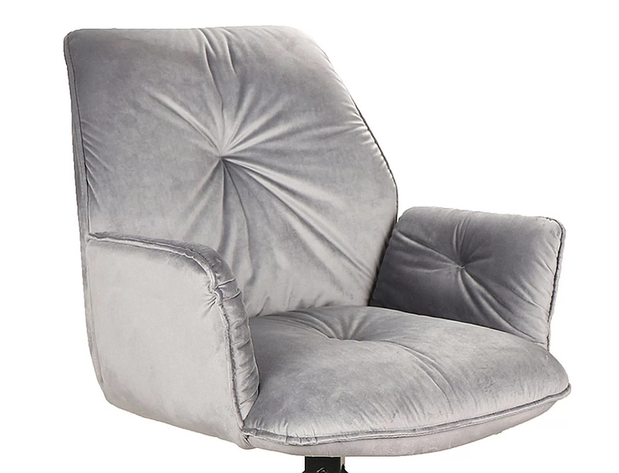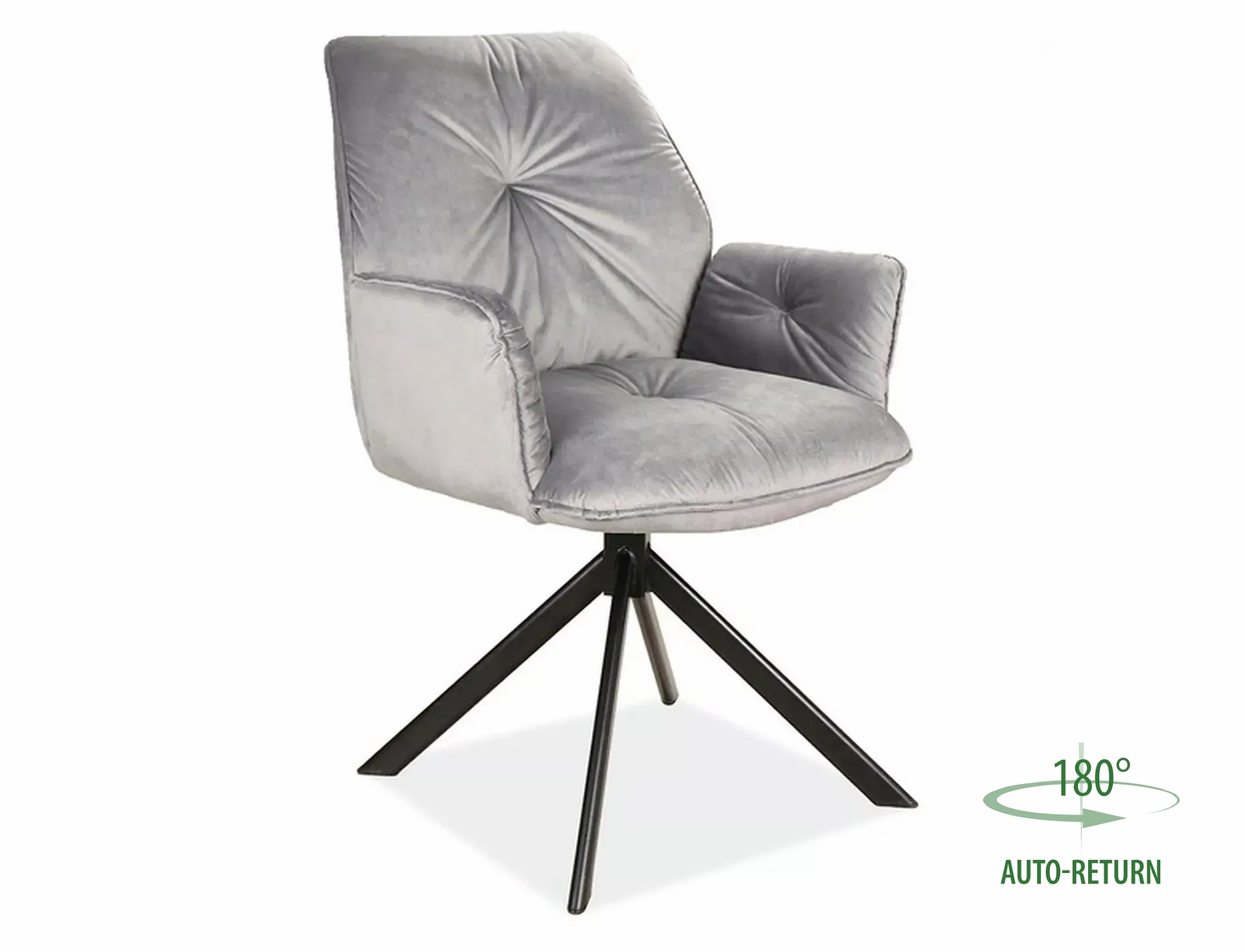 Krzesło, tkanina aksamit: Bluvel, kolor: szary 14 / metal. czarny mat. Siedzisko obracane w zakresie 180st, z funkcją powrotu do pierwotnej pozycji. W ofercie krzesło Boogie I – bez podłokietników.