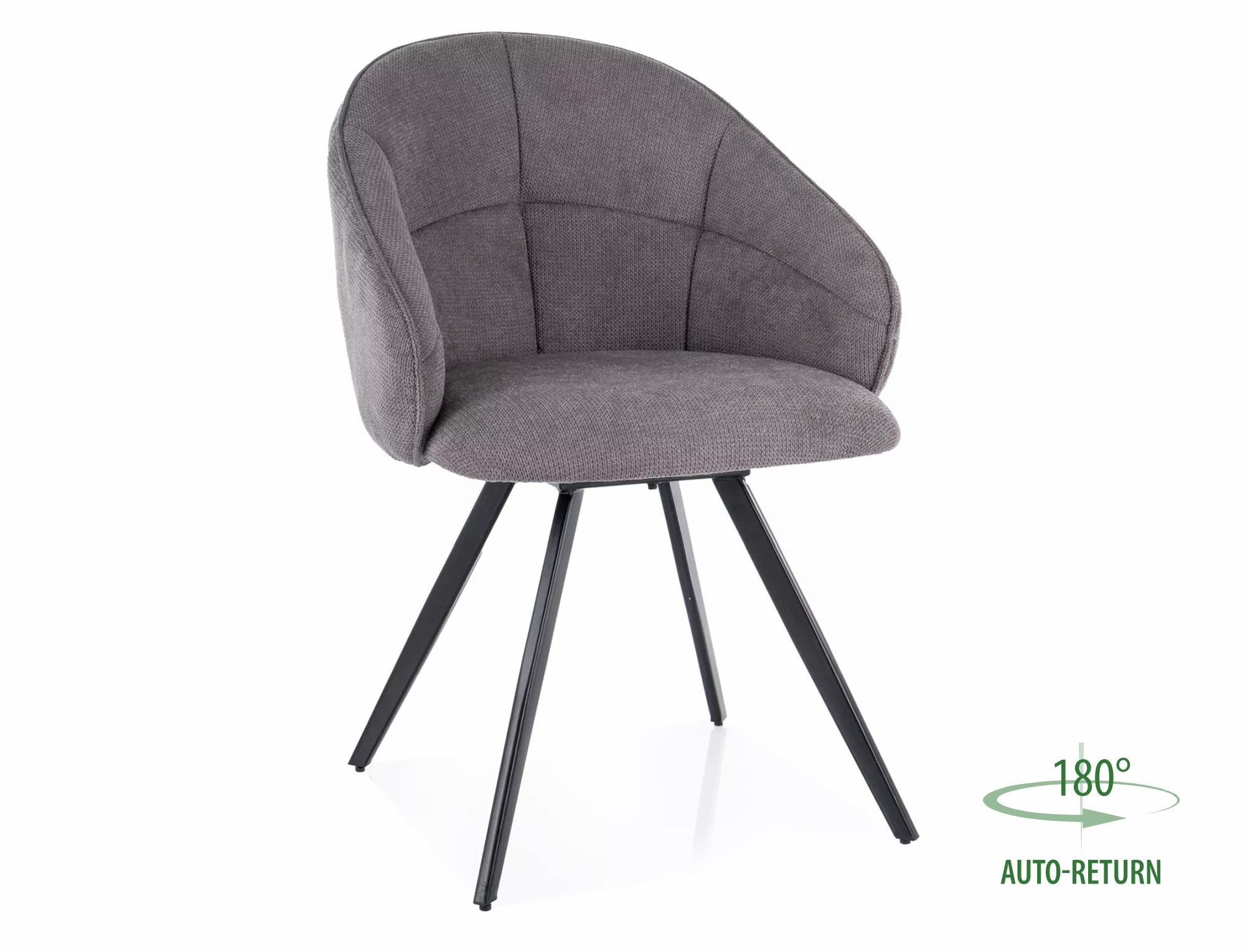 Krzesło, tapicerka: tkanina Vardo, stelaż: metal, kolor: 11 szary / czarny mat. Funkcja auto-return – siedzisko obracane w zakresie 180st, z funkcją powrotu do pierwotnej pozycji.