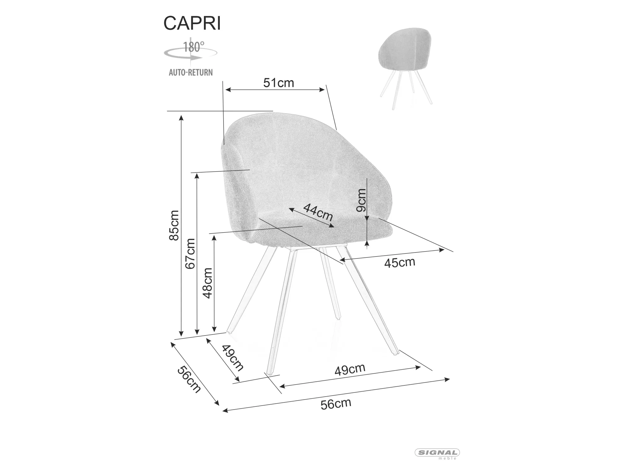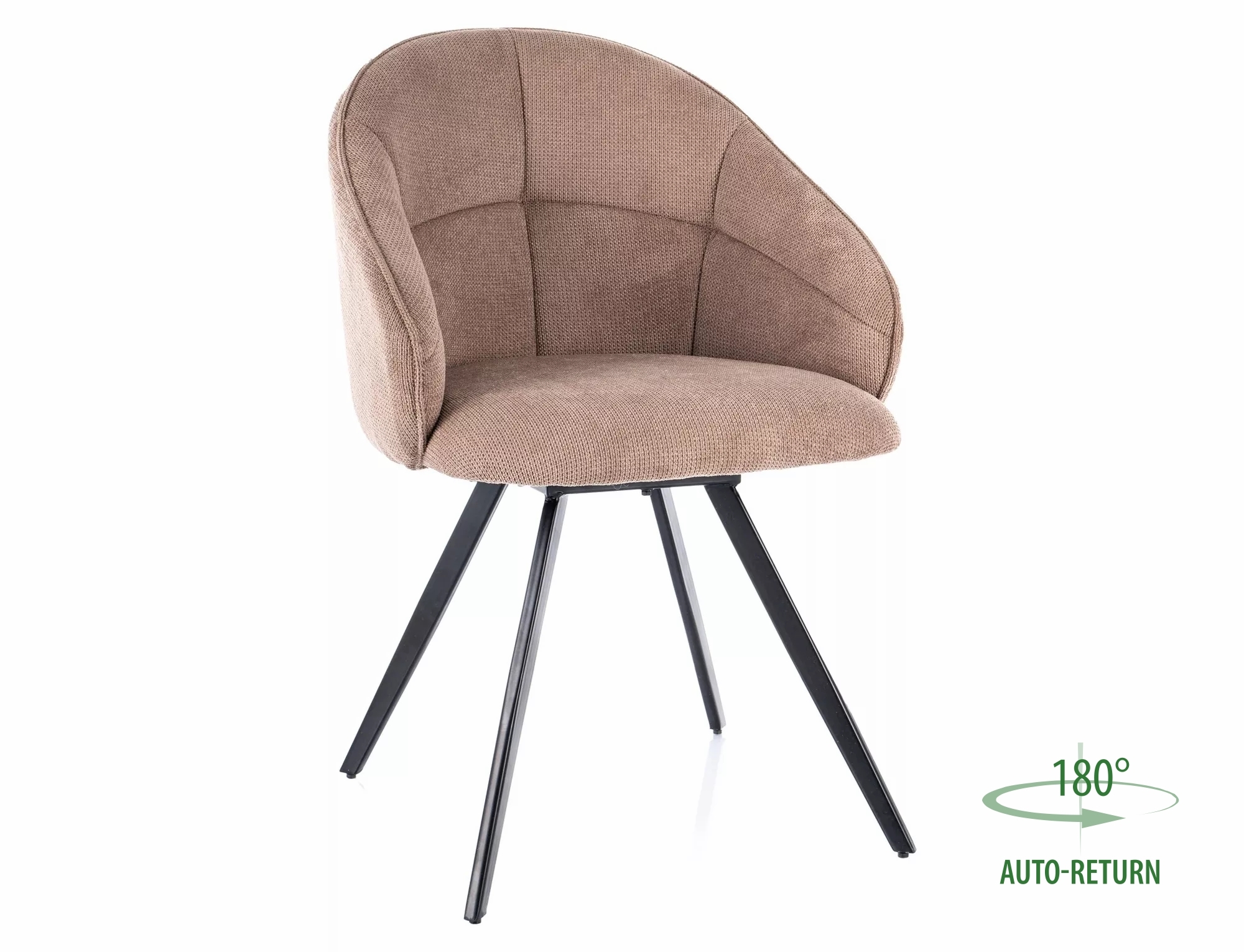 Krzesło, tapicerka: tkanina Vardo, stelaż: metal, kolor: 35 ciemny beżowy / czarny mat. Funkcja auto-return – siedzisko obracane w zakresie 180st, z funkcją powrotu do pierwotnej pozycji.