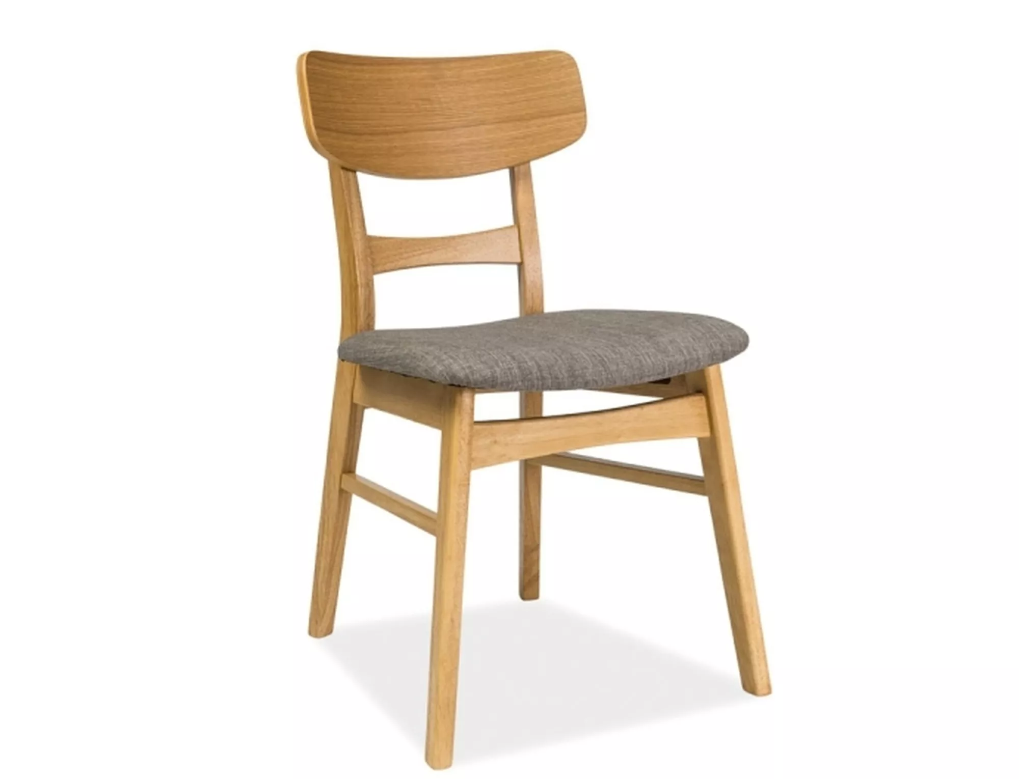 Krzesło, siedzisko tapicerowane, tkanina, kolor: szary, tap. 40, stelaż: drewno, kolor dąb