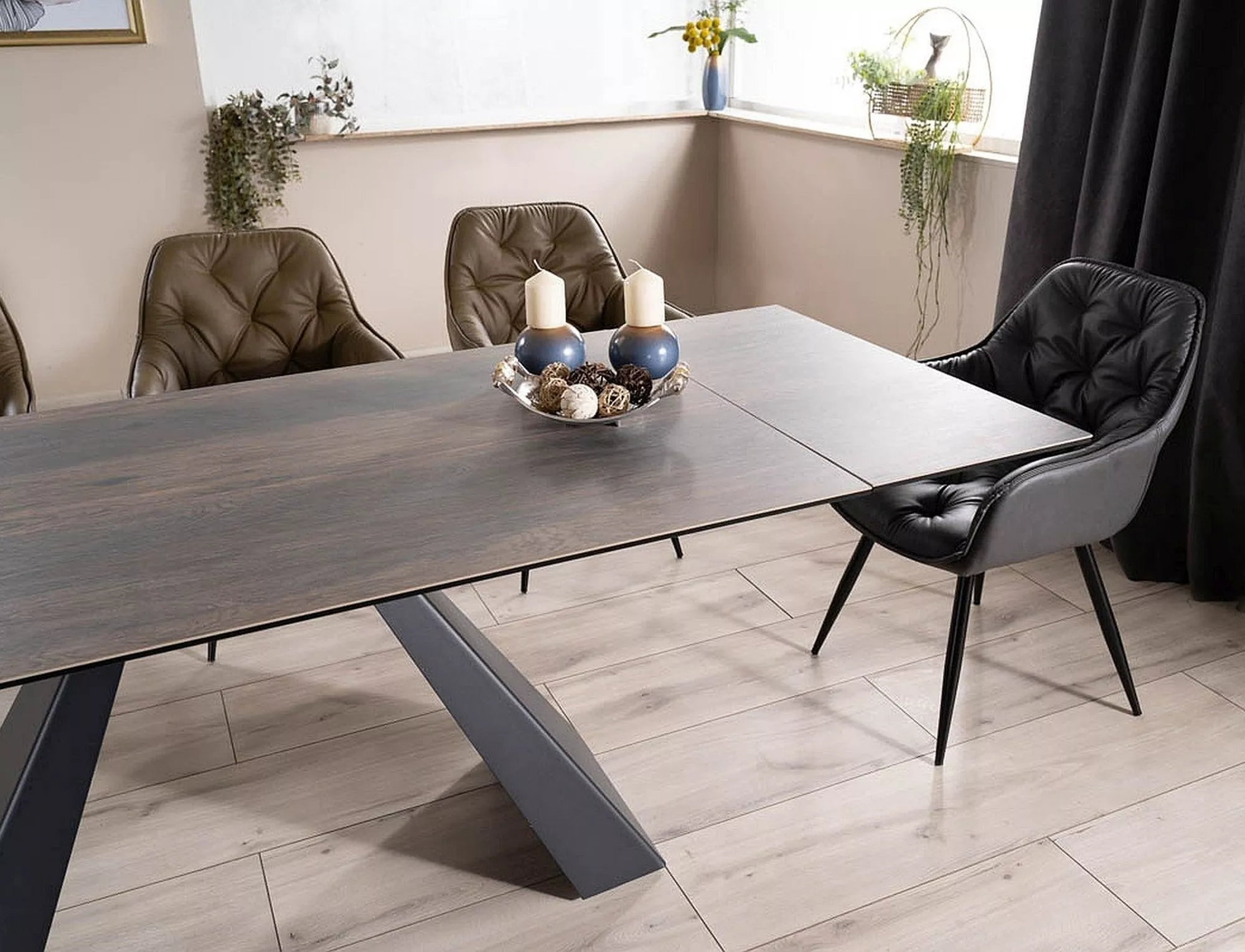 Krzesło, skóra syntetyczna, kolory: szary / metal, czarny mat.