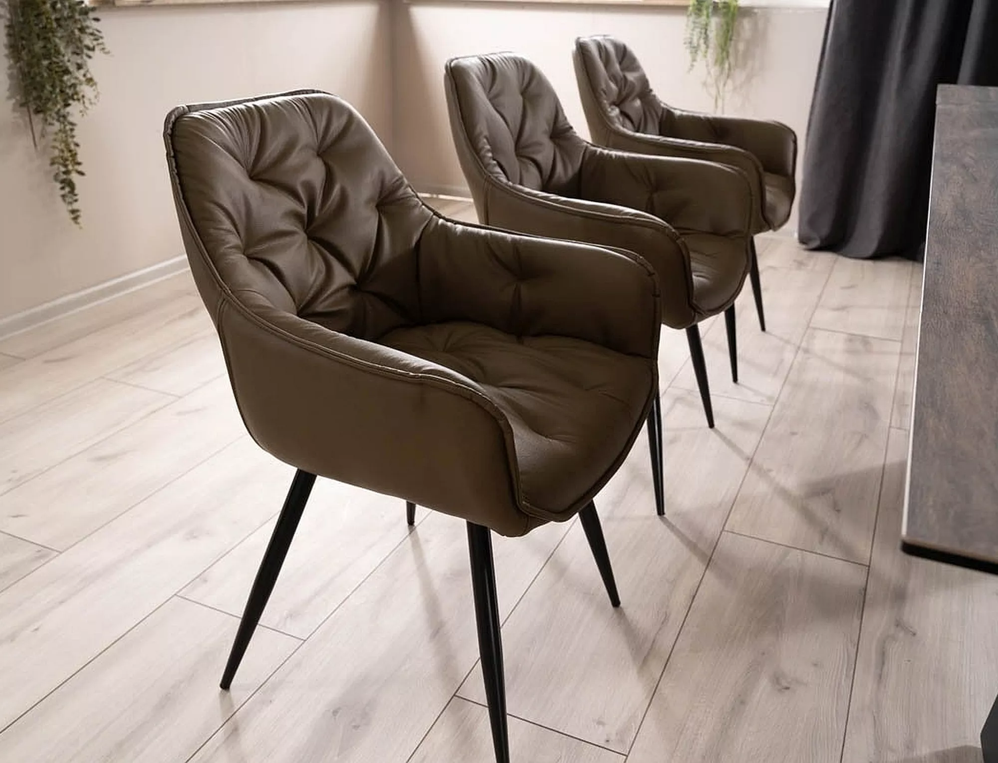 Krzesło, skóra syntetyczna, kolory: oliwkowy / metal, czarny mat.