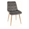 Krzesło, tkanina aksamit: Bluvel, kolor: szary 14 / metal, kolor: dąb.