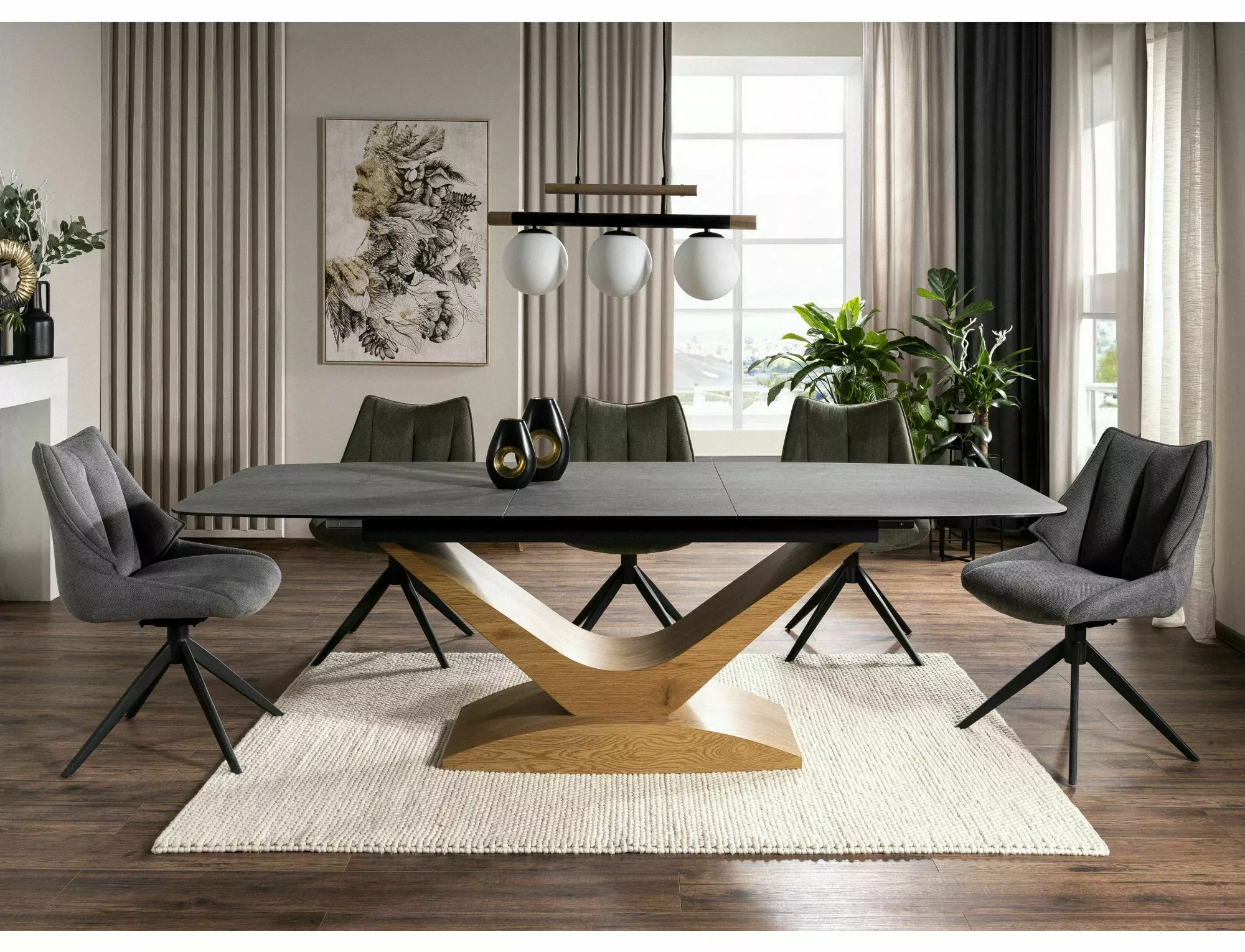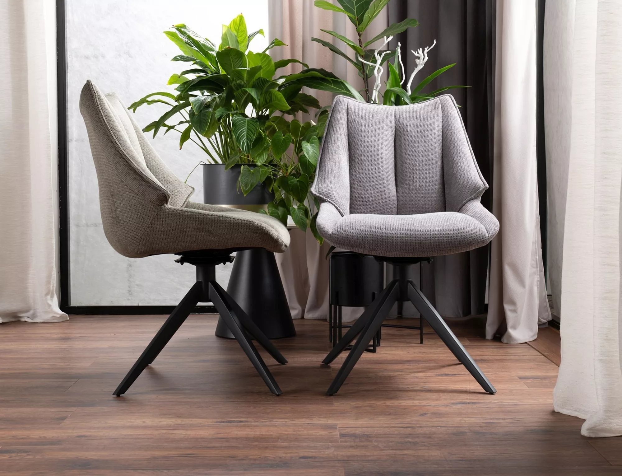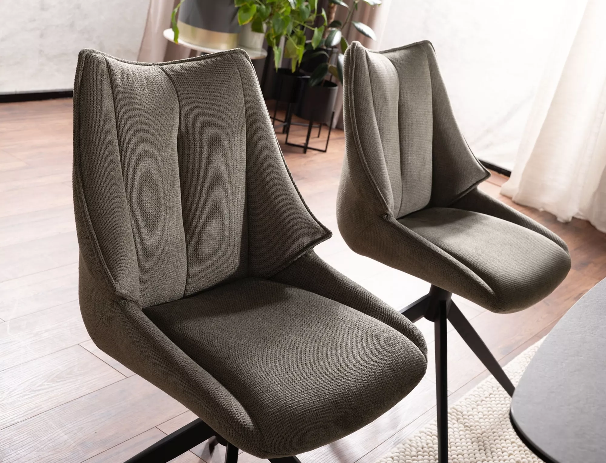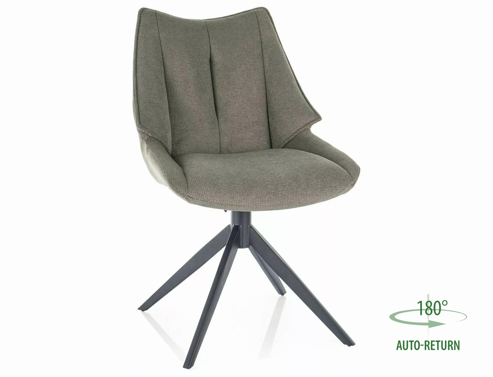 Krzesło, tapicerka: tkanina Vardo, stelaż: metal, kolor: 74 oliwkowy / czarny mat. Funkcja auto-return – siedzisko obracane w zakresie 180st, z funkcją powrotu do pierwotnej pozycji.