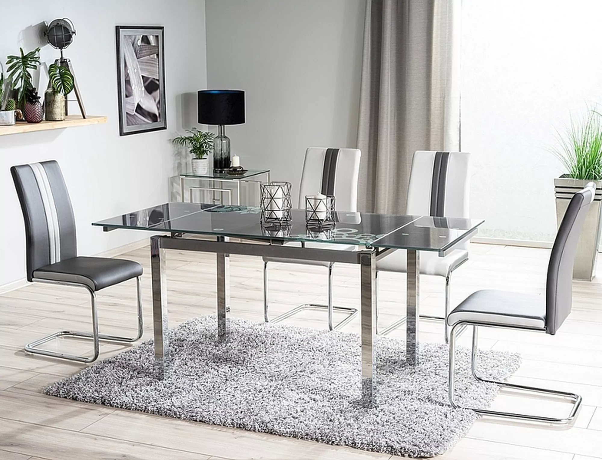 Krzesło, ekoskóra, kolor: szary + jasno szare boki / stelaż metal chromowany.