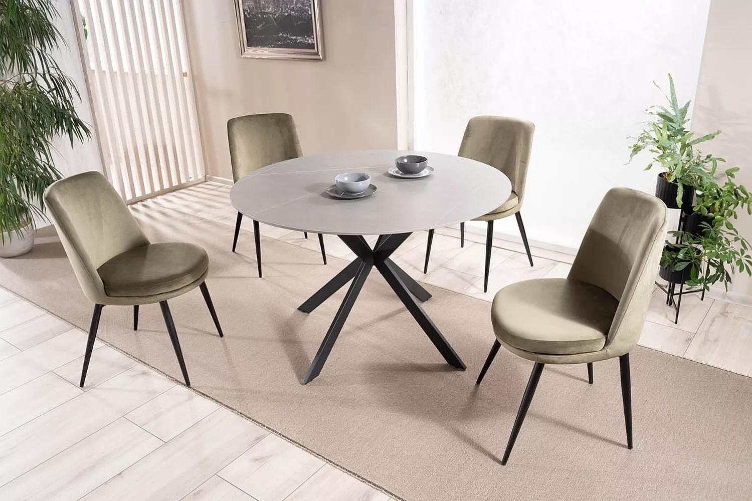 Krzesło, tkanina Bluvel 77 – oliwkowy, stelaż: metal, kolor: czarny mat.
