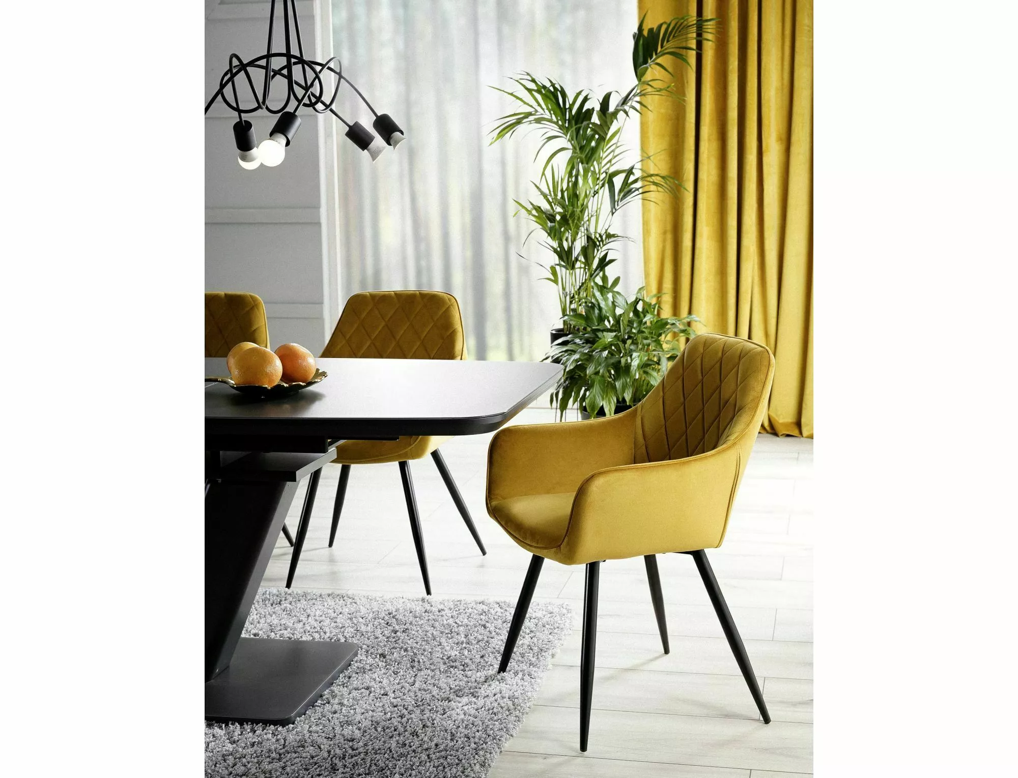Krzesło, tkanina aksamit: Bluvel 68 – curry, stelaż: metal, kolor: czarny mat.