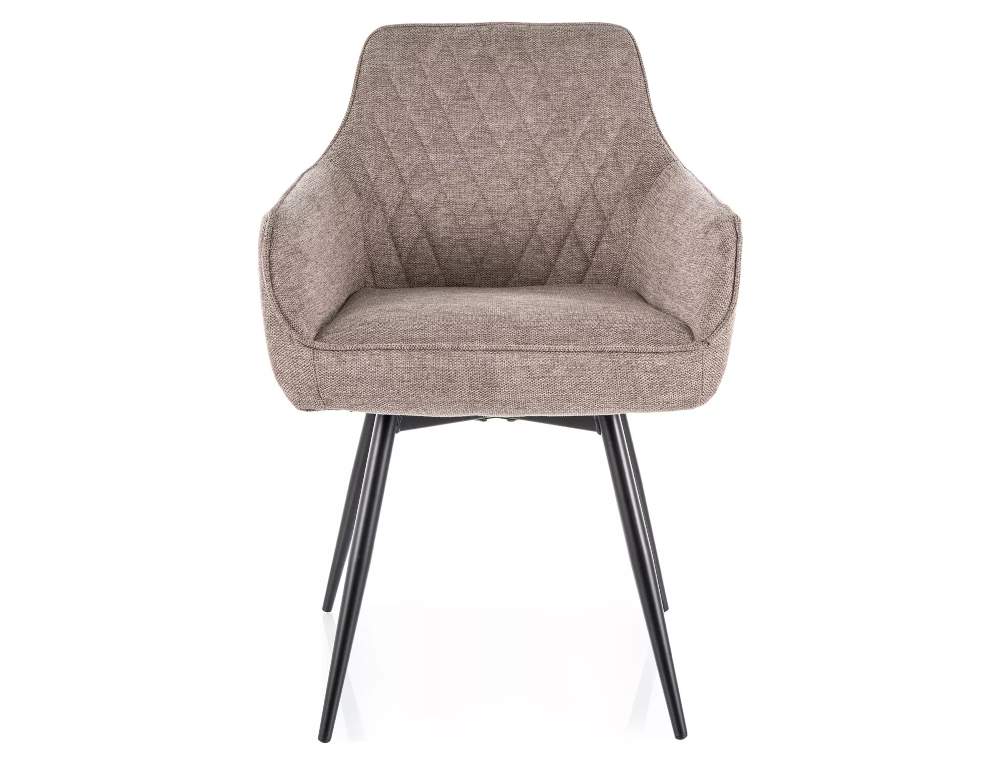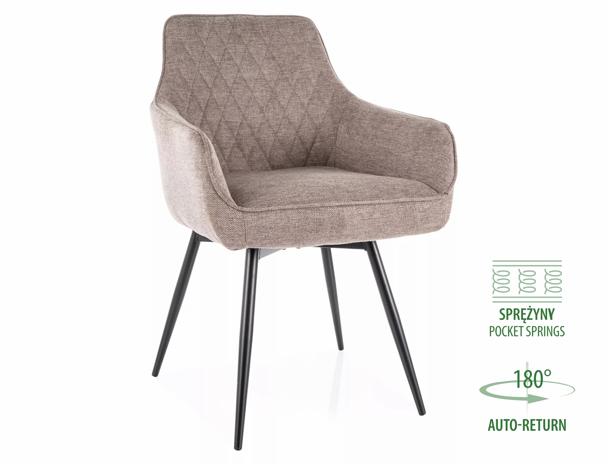 Krzesło, tapicerka: tkanina Brego 34, stelaż: metal, kolor: beżowy / czarny mat.Funkcja auto-return – siedzisko obracane w zakresie 180st, z funkcją powrotu do pierwotnej pozycji. Sprężyny kieszeniowe w siedzisku.