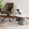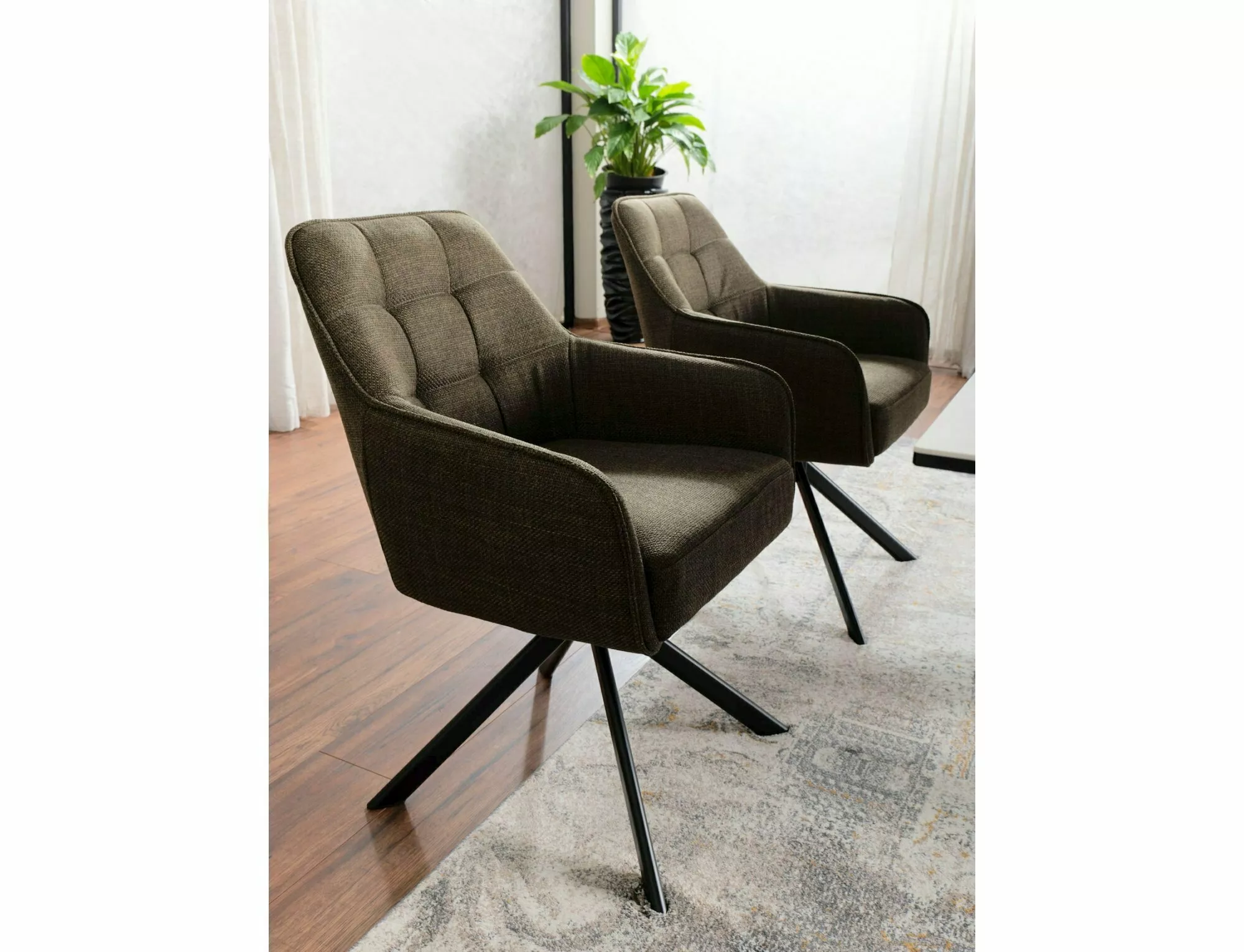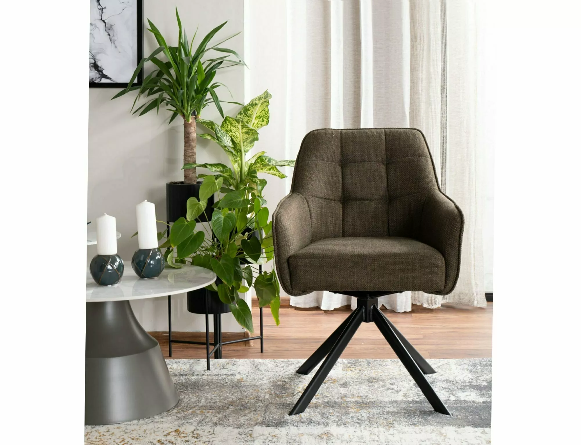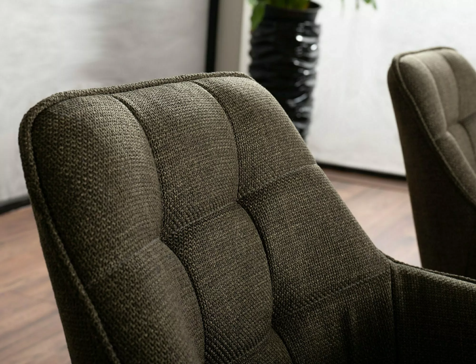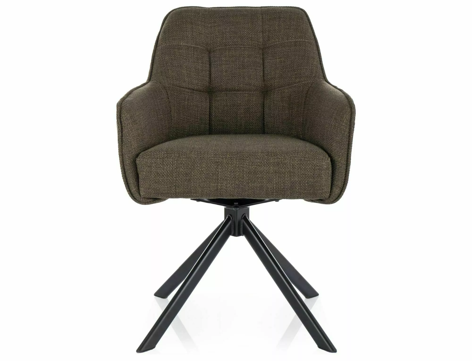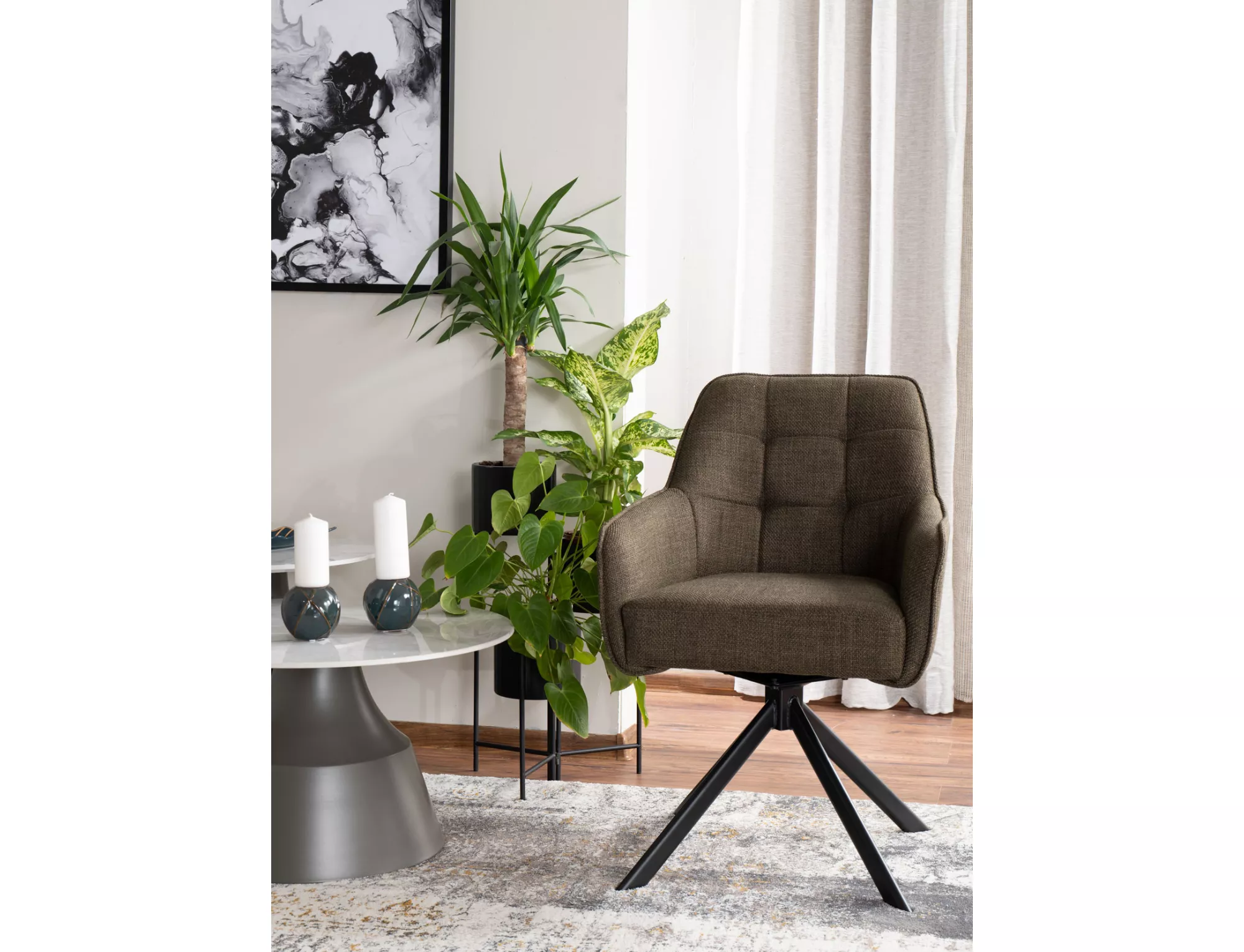 Krzesło, tapicerka: tkanina Bjorn, stelaż: metal, kolor: 77 oliwkowy / czarny mat. Funkcja auto-return – siedzisko obracane w zakresie 180st, z funkcją powrotu do pierwotnej pozycji. Sprężyny kieszeniowe w siedzisku.