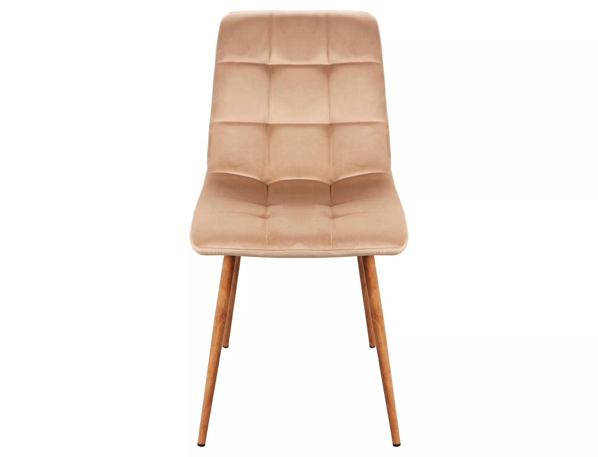 Krzesło, tkanina aksamit: Bluvel, kolor: beżowy 28 / metal, kolor: dąb.