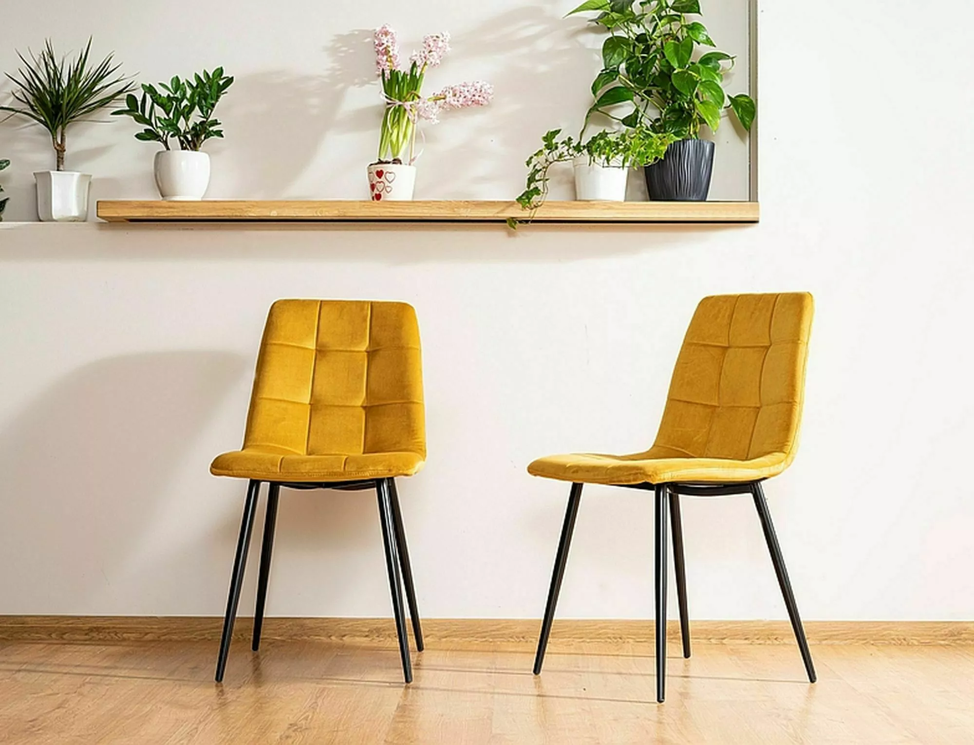 Krzesło, tkanina aksamit: Bluvel 68 – curry / metal, kolor: czarny mat.