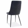Krzesło, tkanina aksamit: Bluvel 19 – czarny, stelaż: metal, kolor: czarny mat. Tył oparcia posiada ozdobne pikowanie w romby.