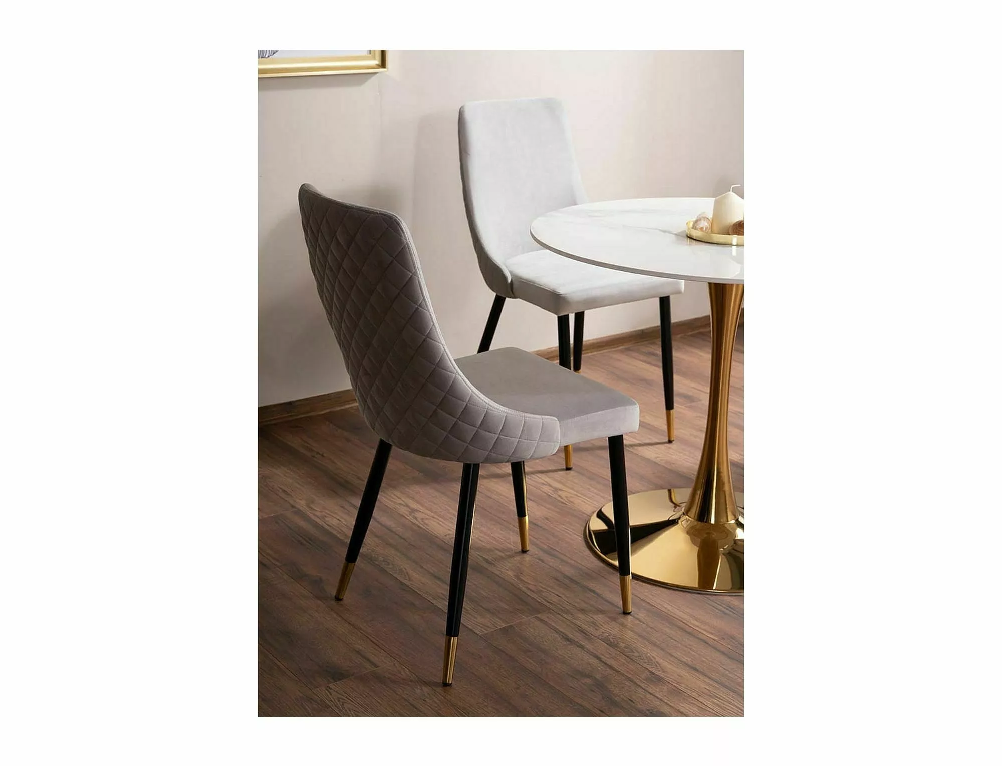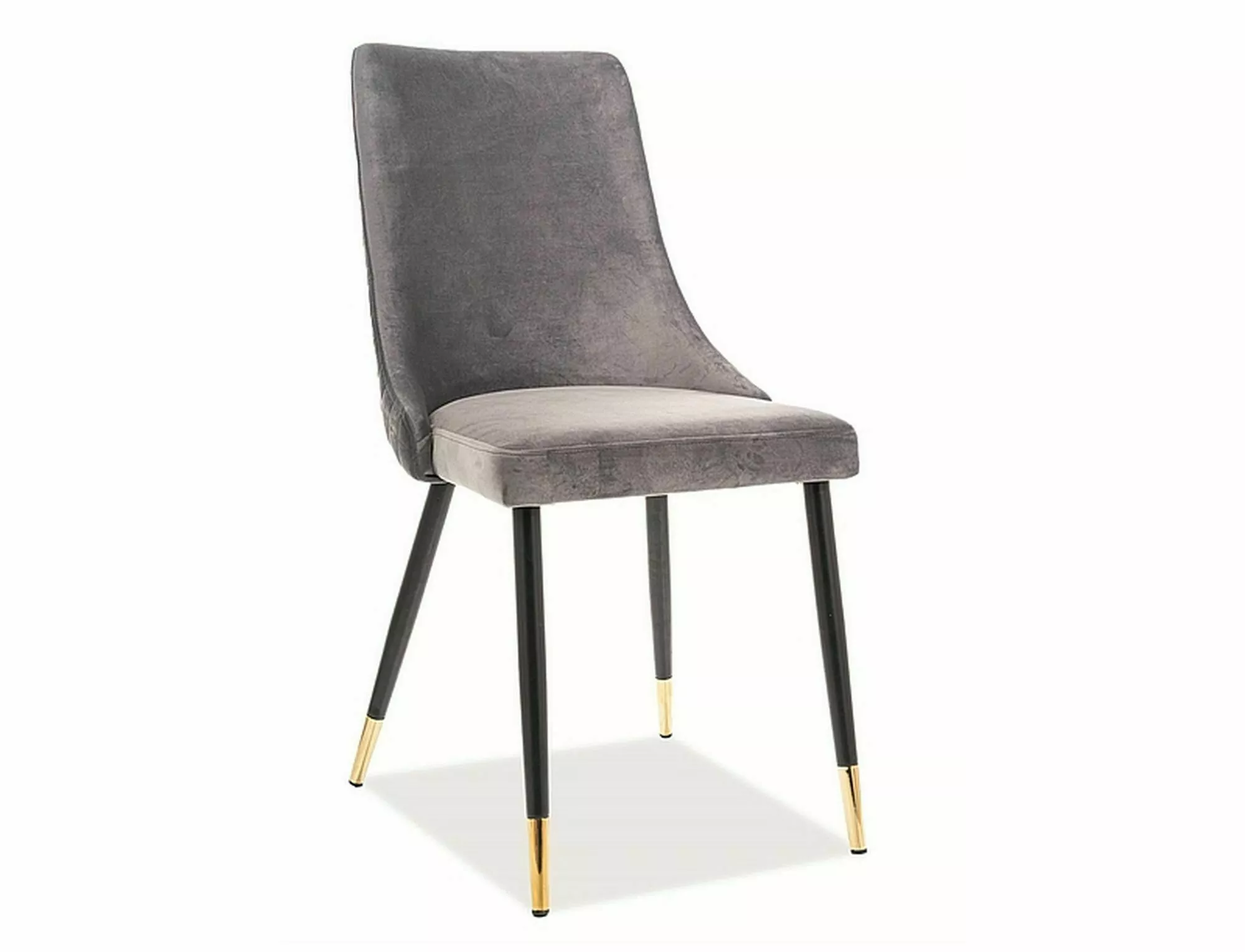 Krzesło, tkanina Bluvel 14 – szary, stelaż: metal, kolor: czarny + złoty.