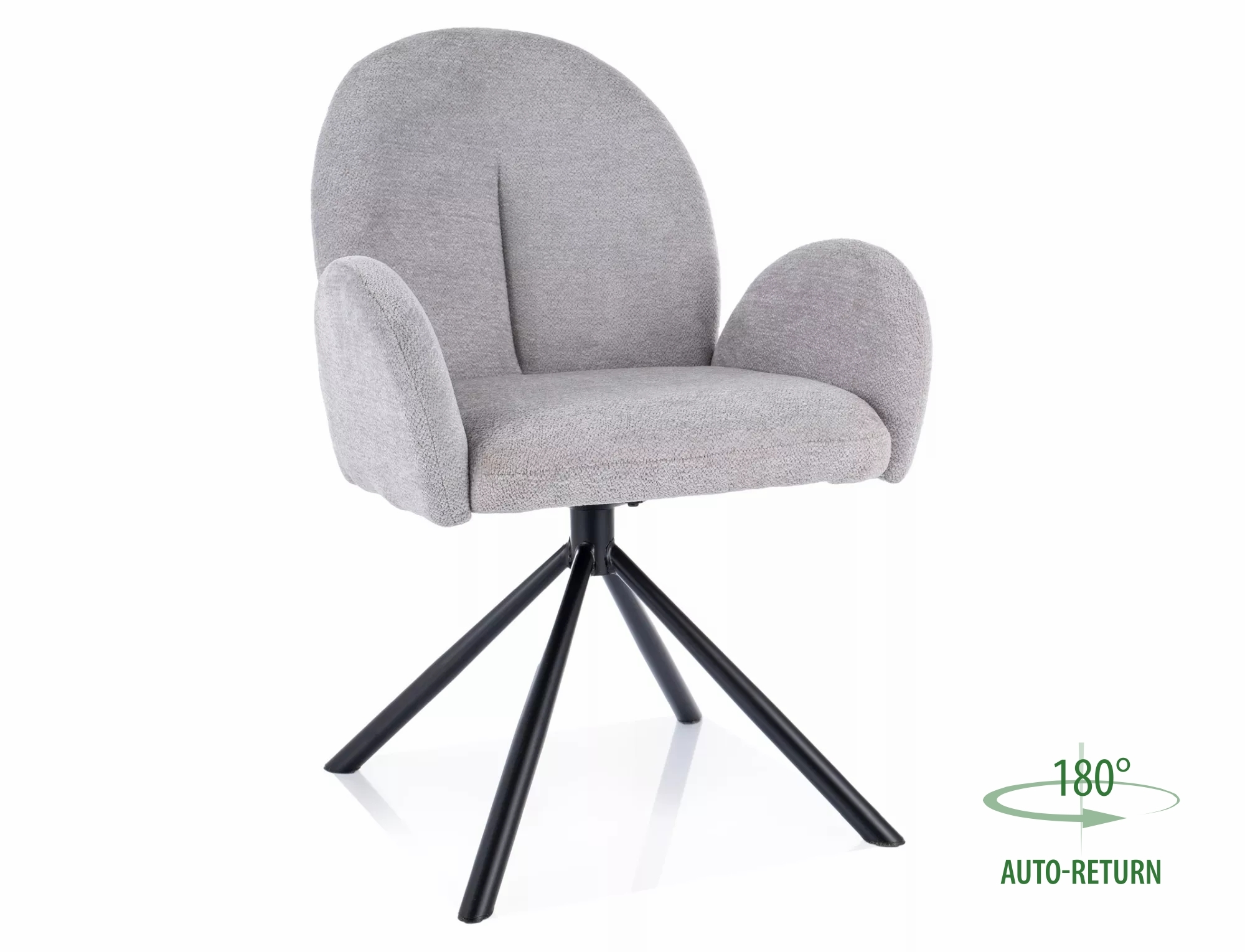 Krzesło, tapicerka: tkanina Raven, stelaż: metal, kolor: 06 jasny szary / czarny mat. Funkcja auto-return – siedzisko obracane w zakresie 180st, z funkcją powrotu do pierwotnej pozycji.