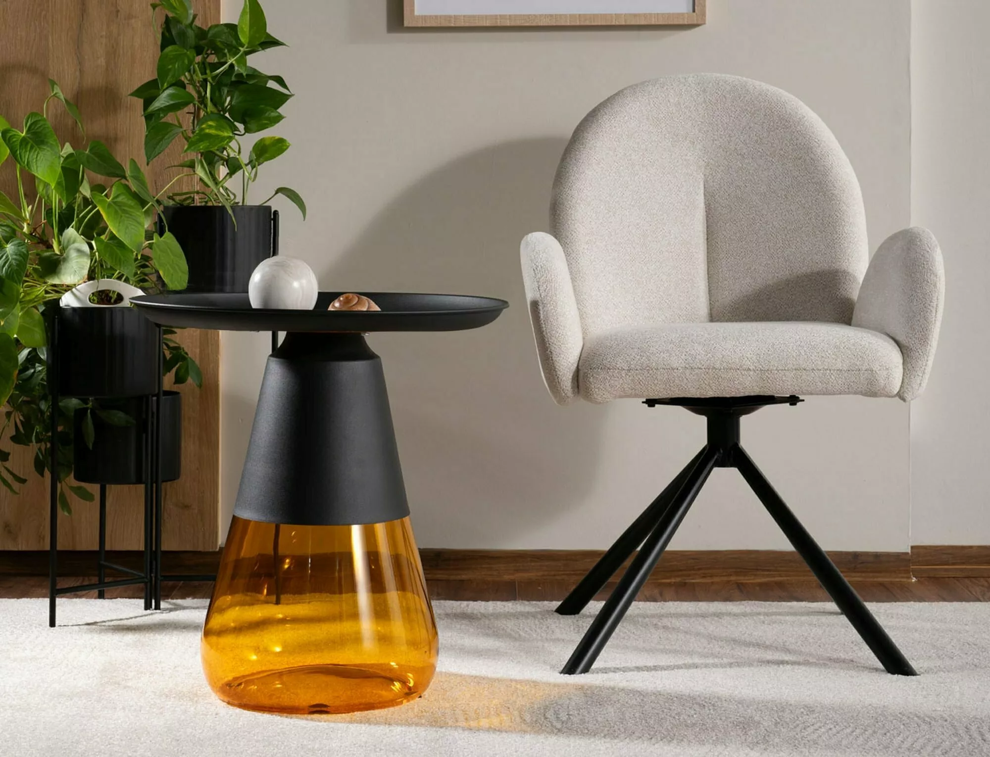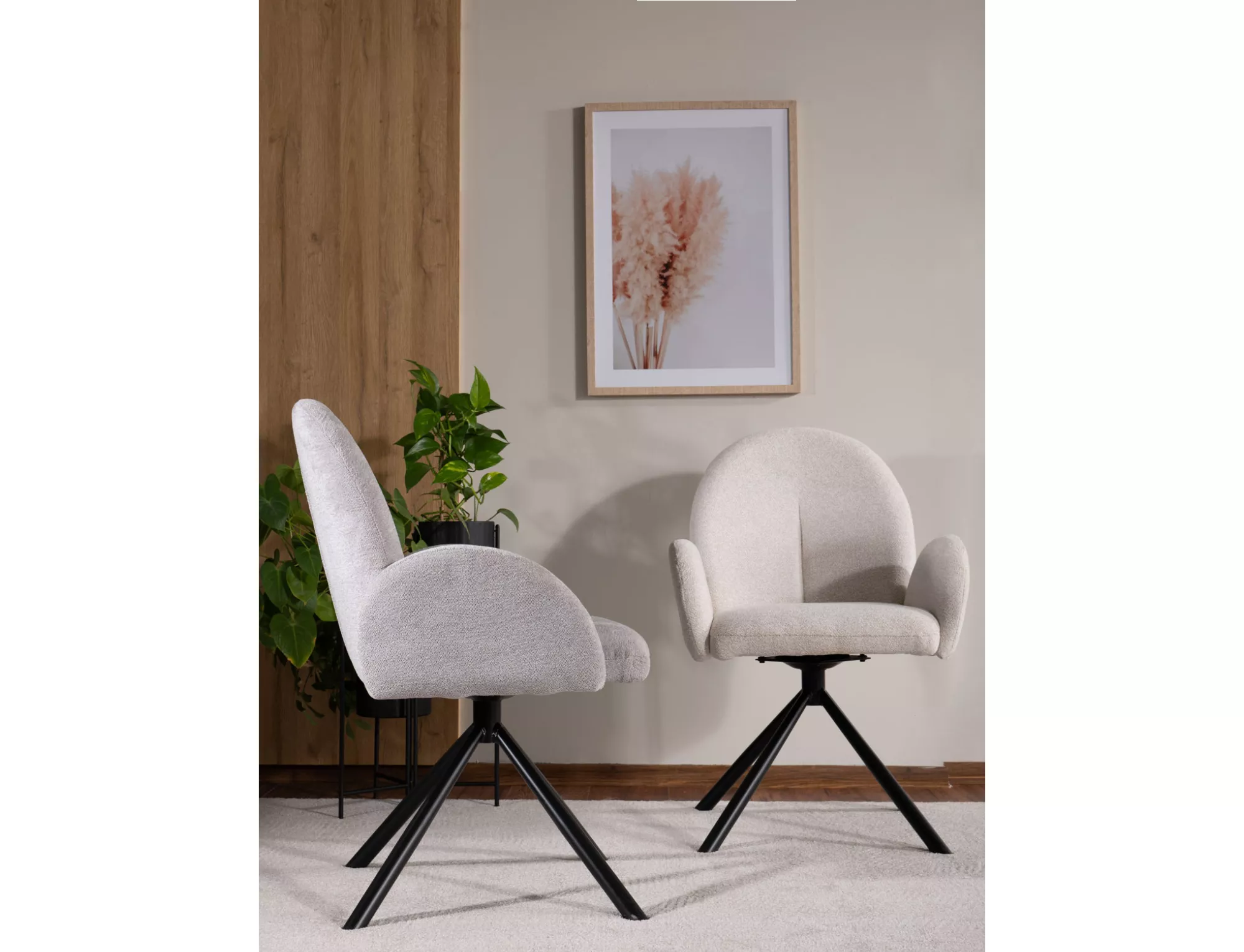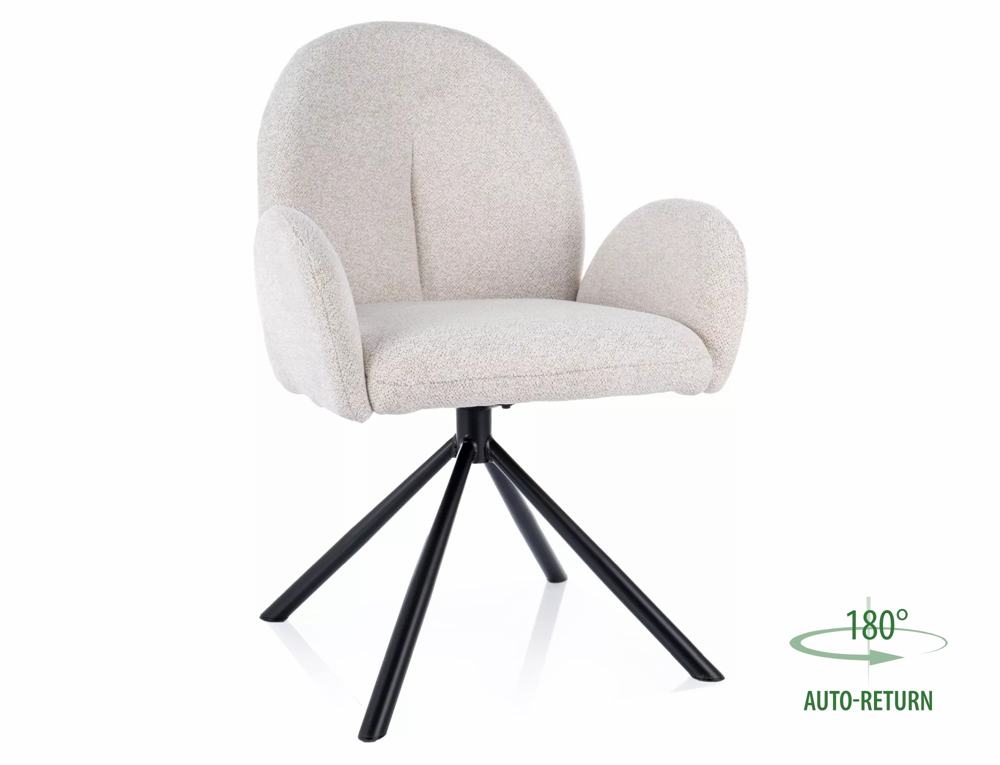 Krzesło, tapicerka: tkanina Raven, stelaż: metal, kolor: 22 beżowy / czarny mat. Funkcja auto-return – siedzisko obracane w zakresie 180st, z funkcją powrotu do pierwotnej pozycji.
