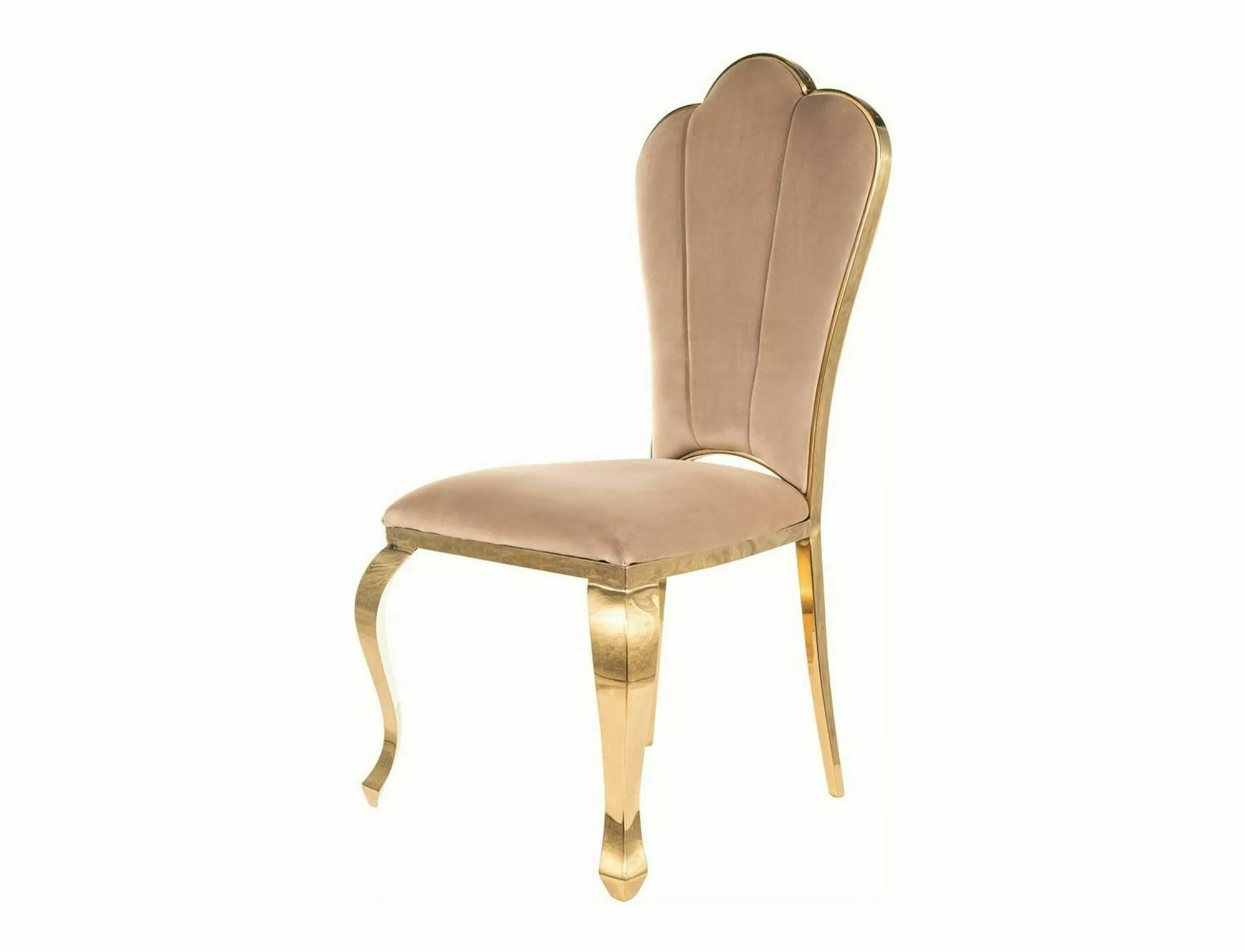 Krzesło, tkanina aksamit: Bluvel, kolor: beżowy 28 / stal nierdzewna, złoty.