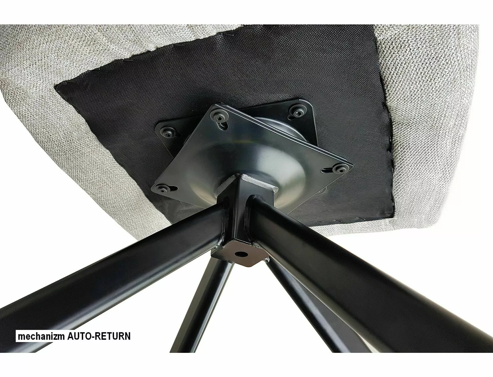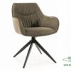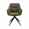 Krzesło, tkanina Brego + skóra syntetyczna Buffalo (tył), kolory: oliwka 77 / oliwka 10, stelaż: metal, czarny mat. Siedzisko obracane w zakresie 180st, z funkcją powrotu do pierwotnej pozycji.