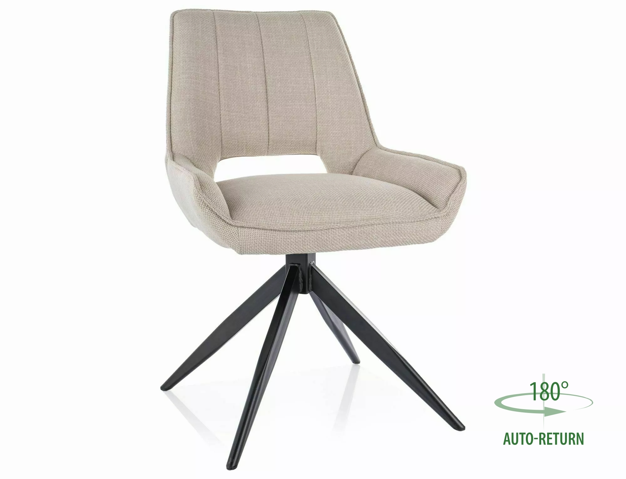 Krzesło, tapicerka: tkanina Bjorn, stelaż: metal, kolor: 24 jasny beżowy / czarny mat. Funkcja auto-return – siedzisko obracane w zakresie 180st, z funkcją powrotu do pierwotnej pozycji.