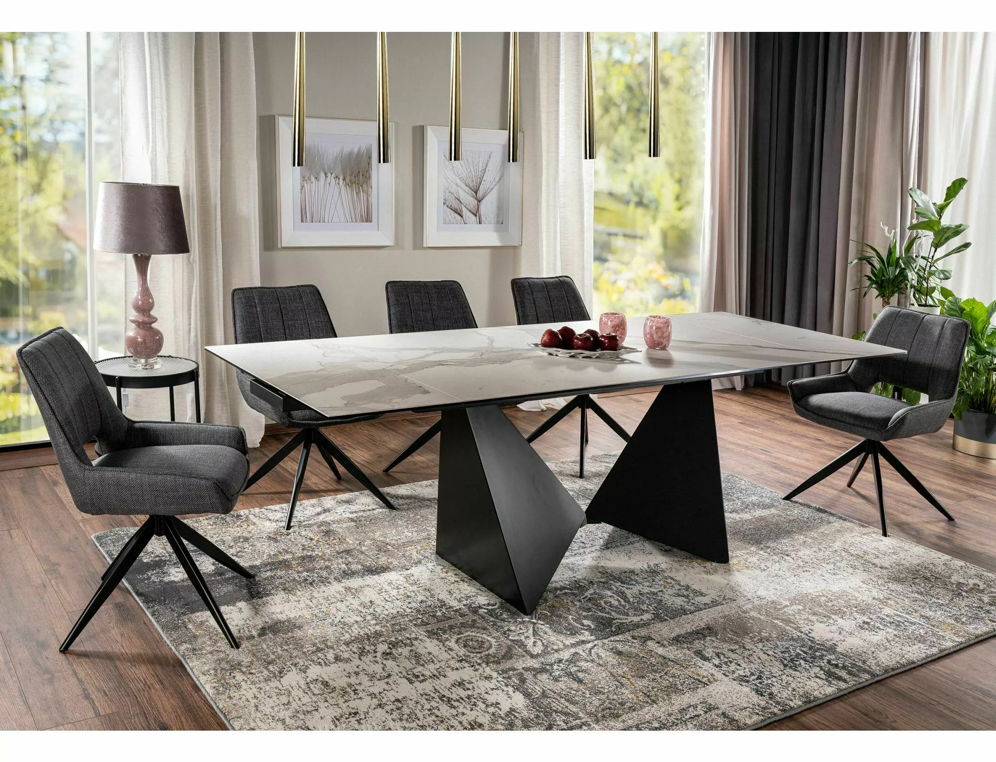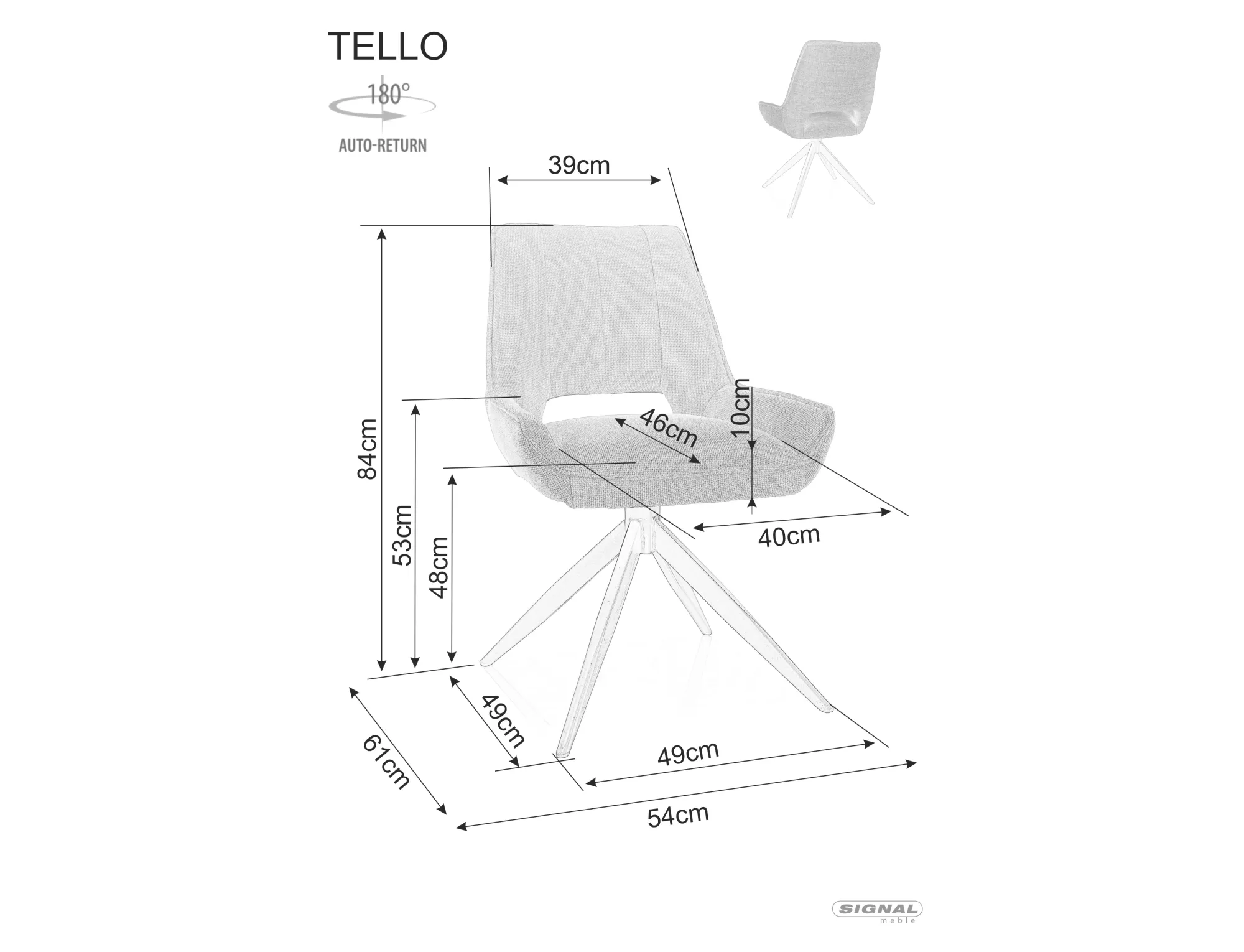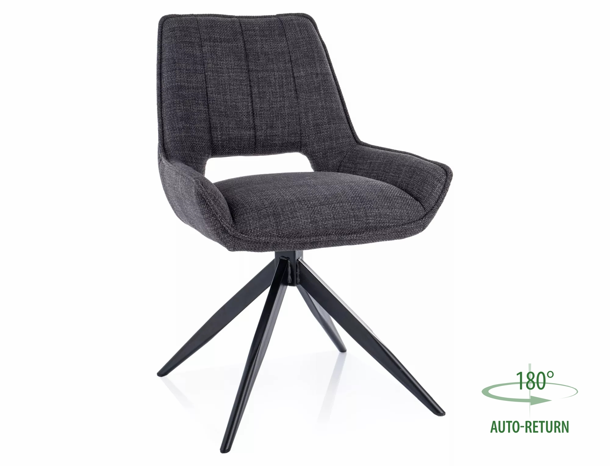 Krzesło, tapicerka: tkanina Bjorn, stelaż: metal, kolor: 16 ciemny szary / czarny mat. Funkcja auto-return – siedzisko obracane w zakresie 180st, z funkcją powrotu do pierwotnej pozycji.
