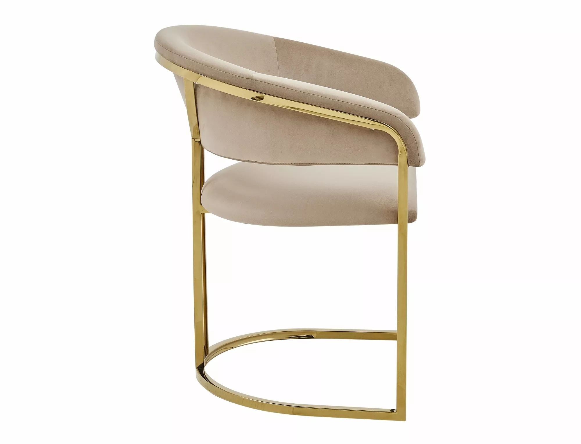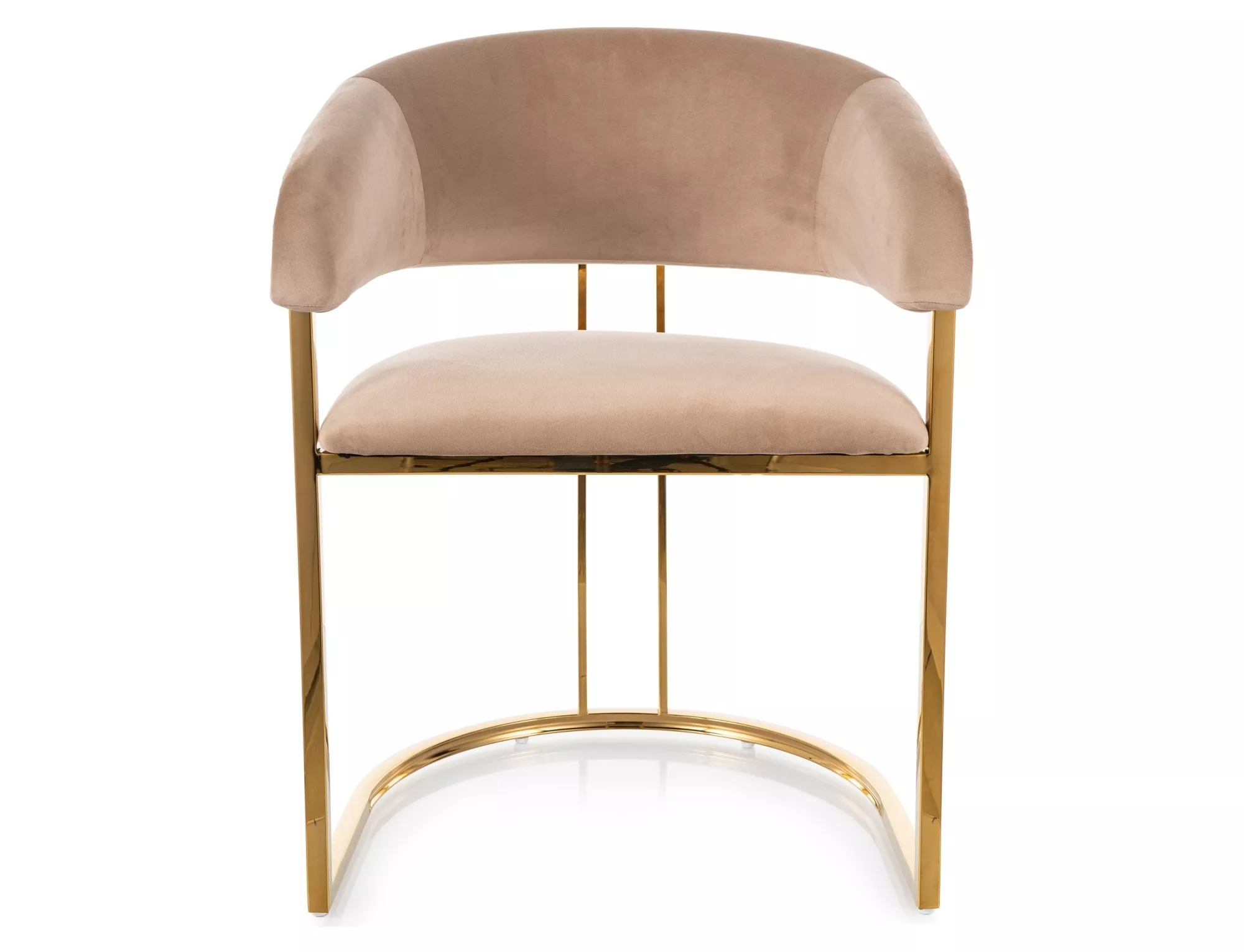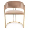 Krzesło, tapicerka: tkanina aksamit: Bluvel 28, stelaż: stal nierdzewna, kolor: beżowy / złoty.
