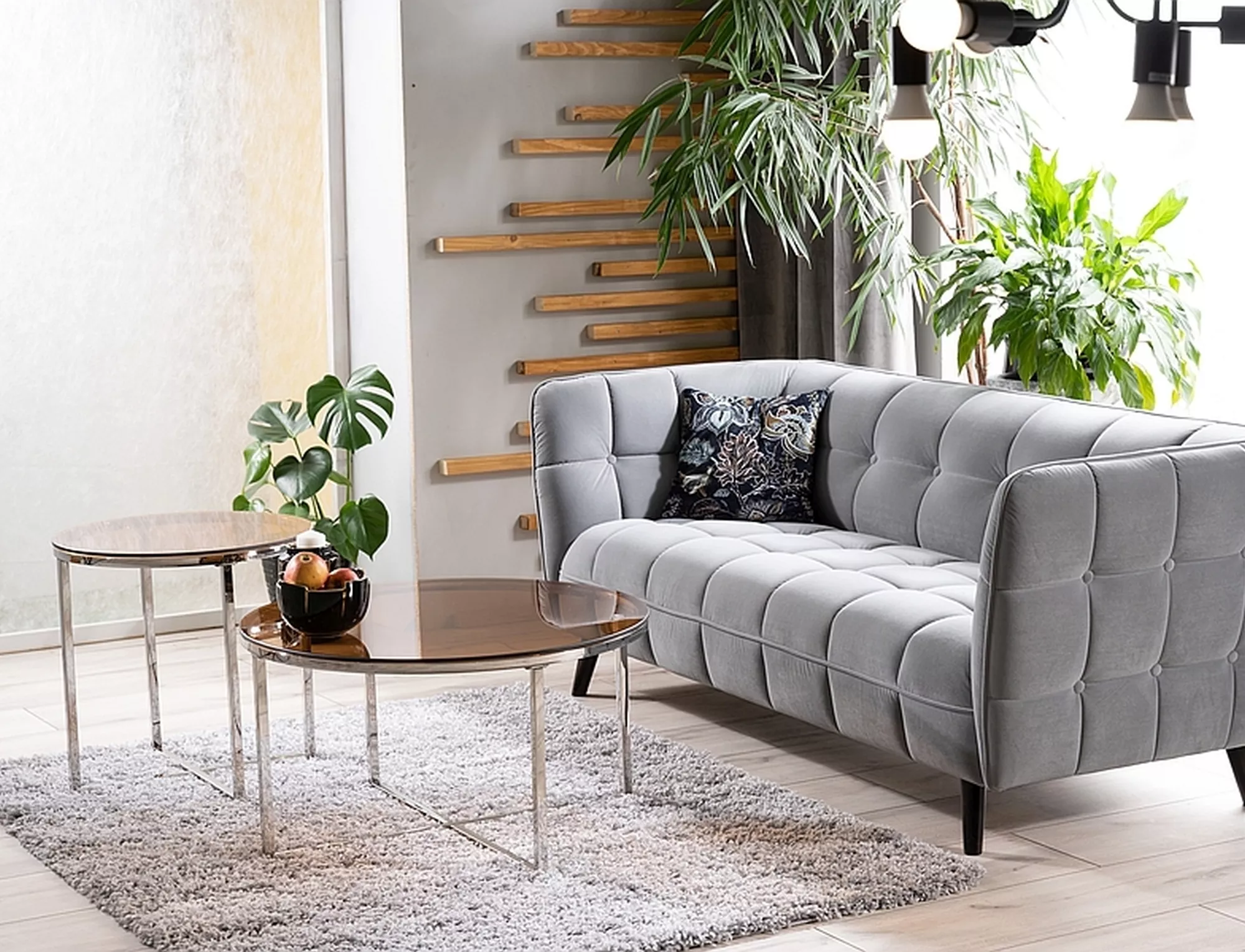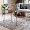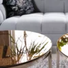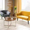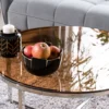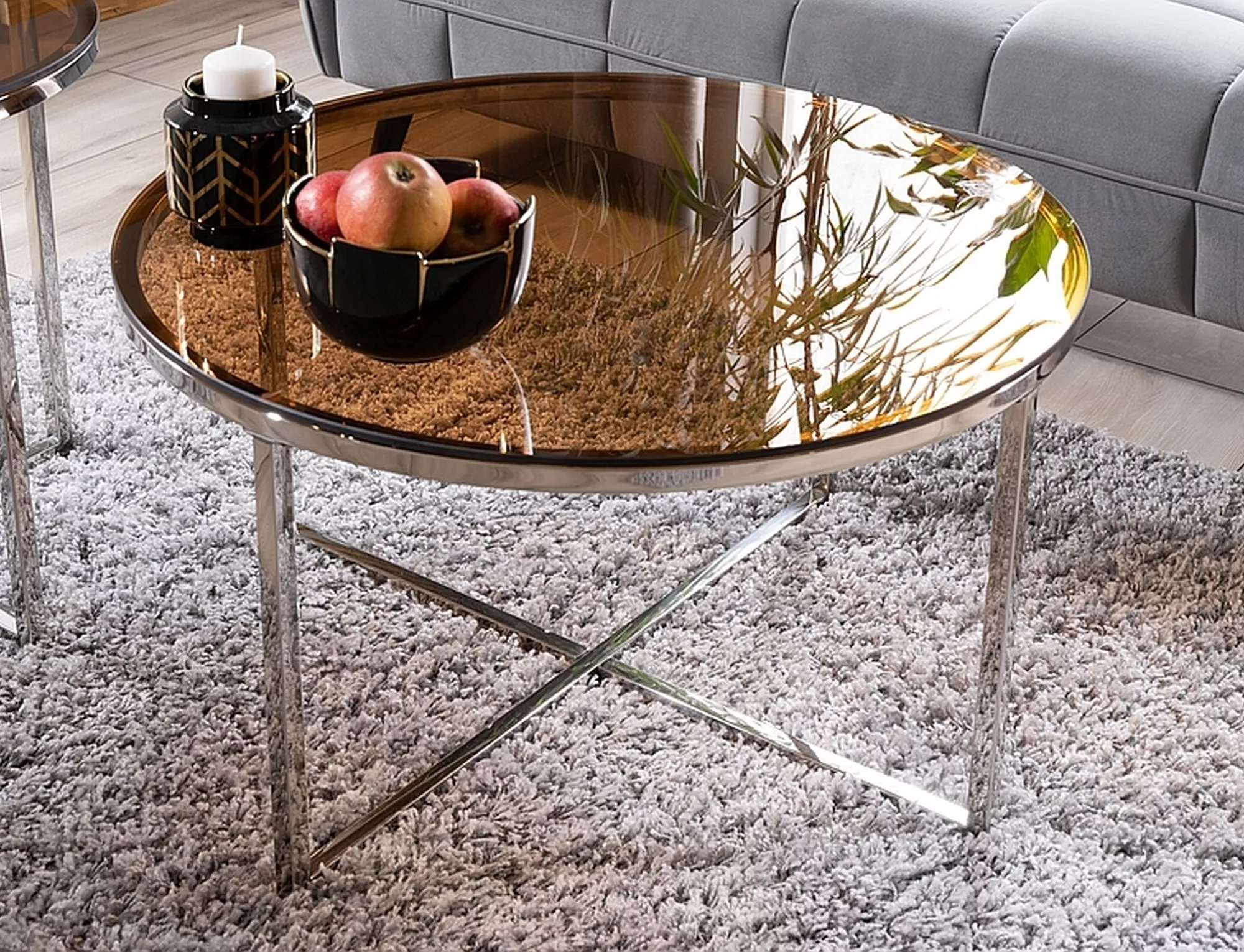 Ława, blat: szkło hartowane bursztynowe, stelaż: stal nierdzewna, kolor: srebrny.