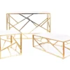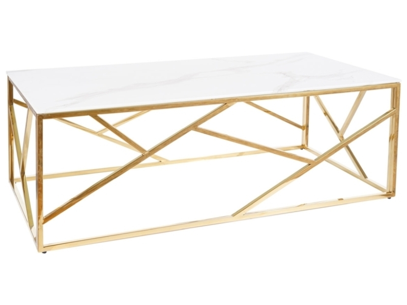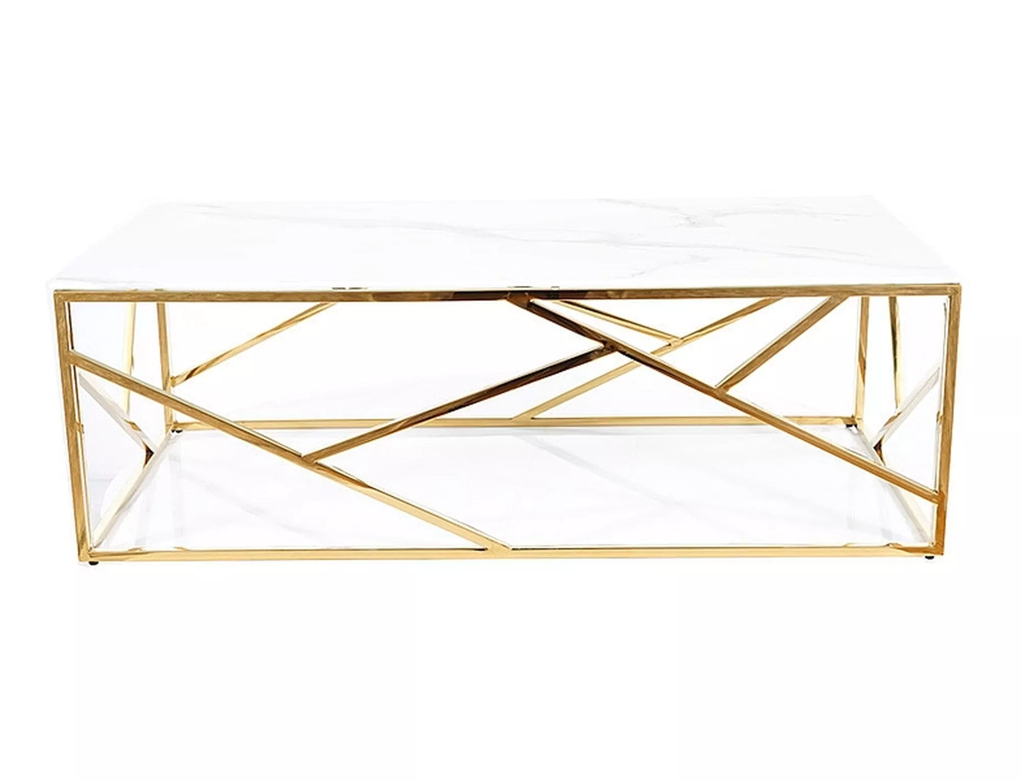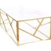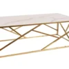 Ława, blat: szkło hartowane, stelaż: stal nierdzewna, kolor: biały, efekt marmuru / złoty.