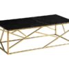Ława, blat: szkło hartowane, stelaż: stal nierdzewna, kolor: czarny, efekt marmuru / złoty.