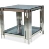 Ława, blat: szkło hartowane dymione, stelaż: metal, kolor: chrom.