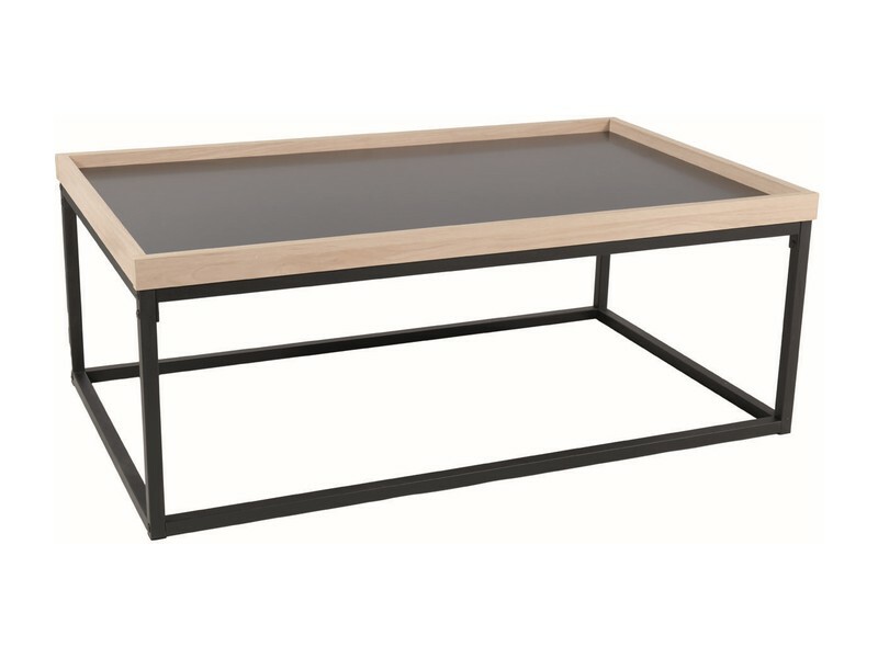 Ława, blat: płyta laminowana, stelaż: metal, kolor: dąb + czarny / czarny.