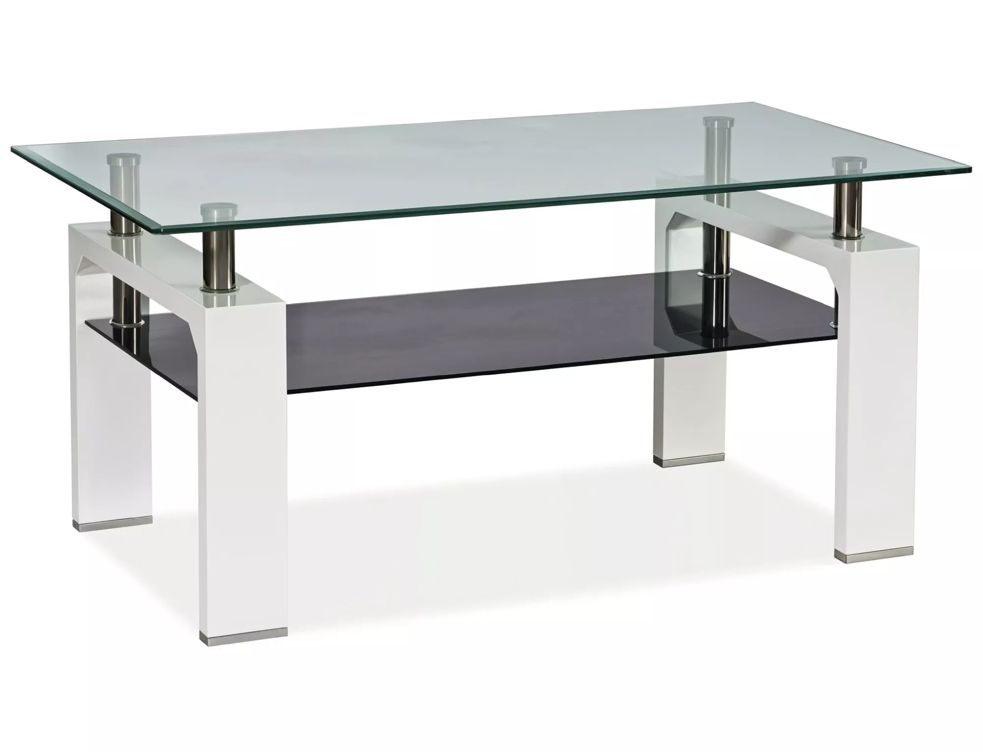 Ława, blat: szkło hartowane / stelaż MDF, kolor: biały lakier