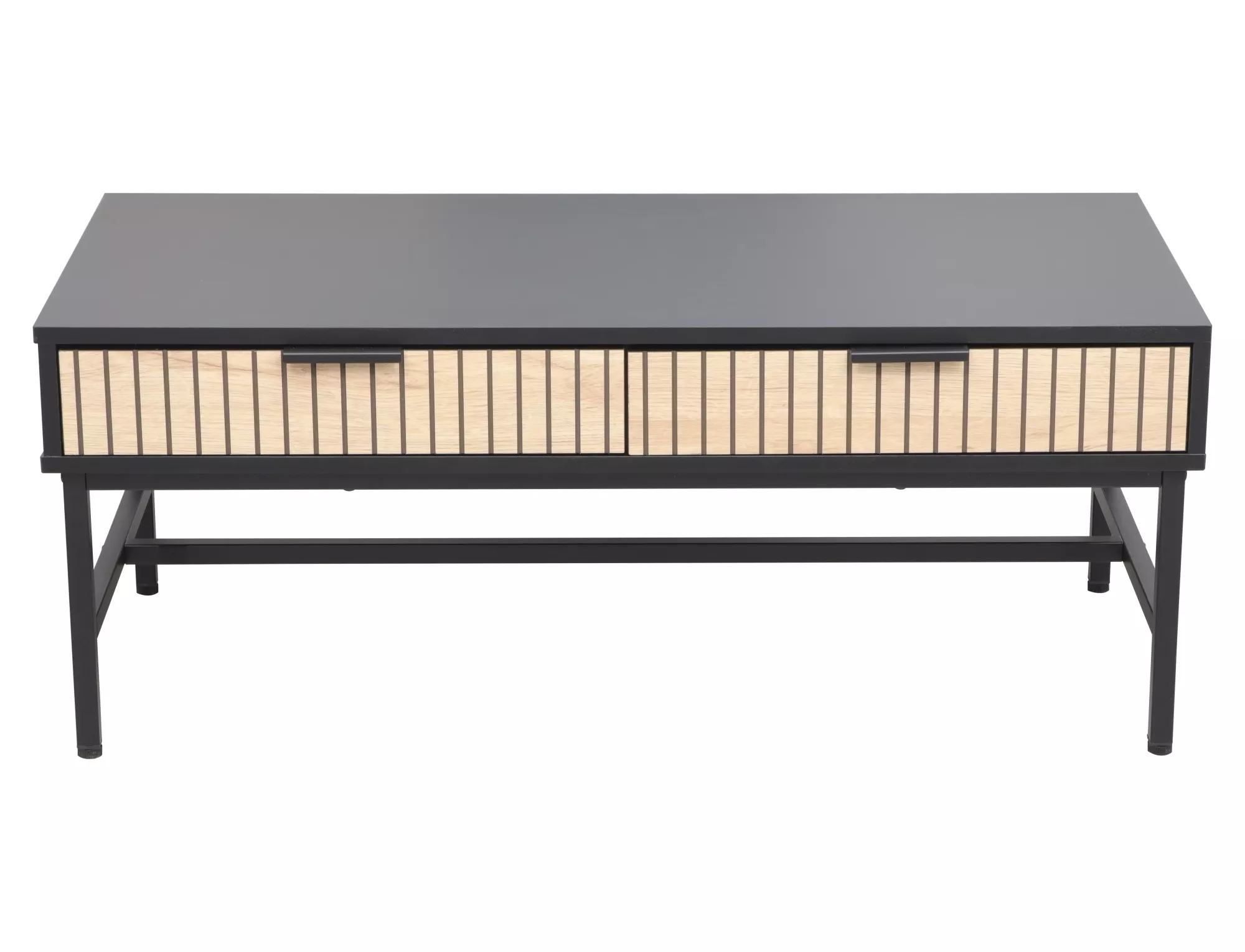 Ława, blat: płyta laminowana, stelaż: metal, kolor: dąb + czarnt mat / czarny. Wysokość nóżek 32cm.