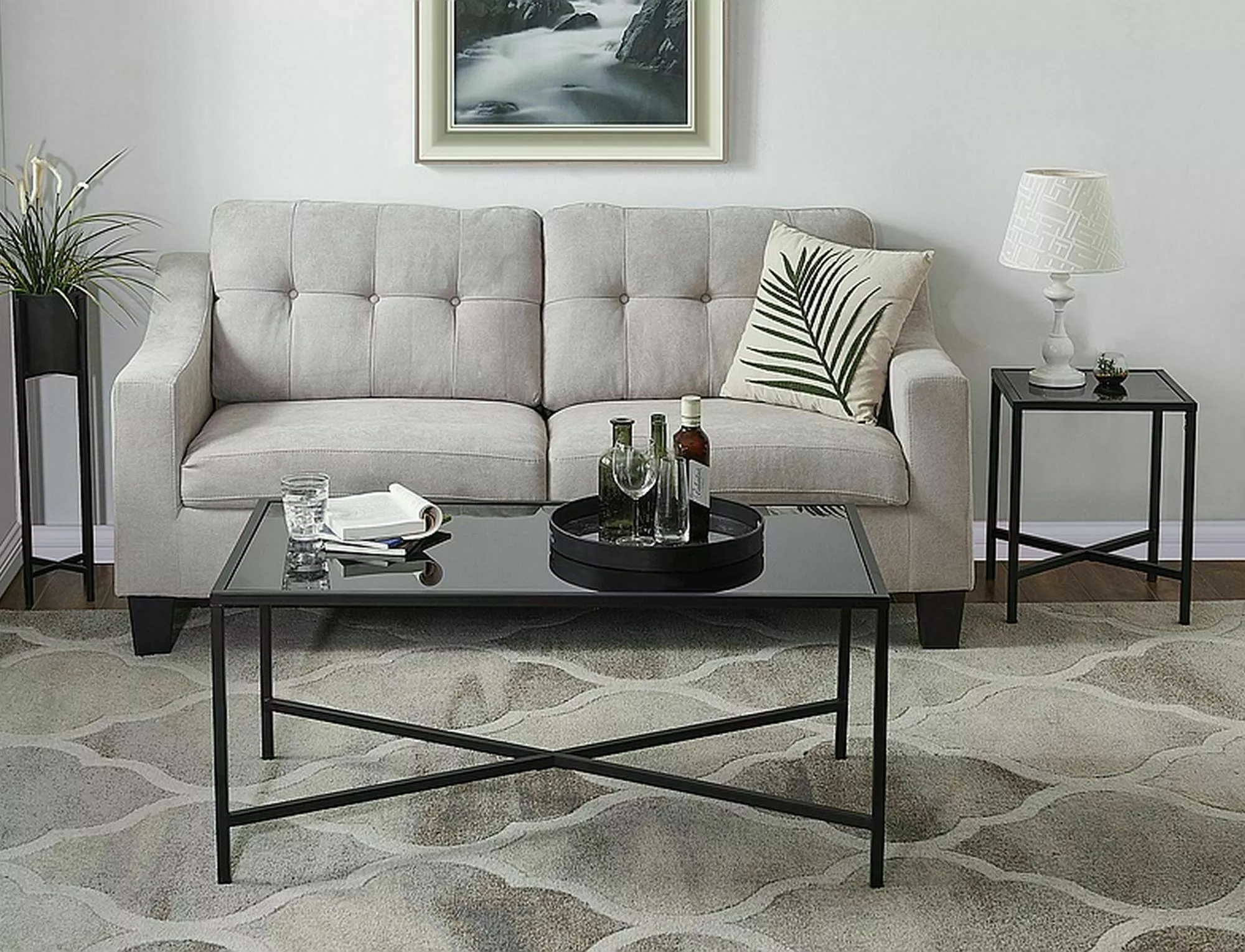 Ława, blat: szkło hartowane, stelaż: metal, kolor: czarny / czarny.