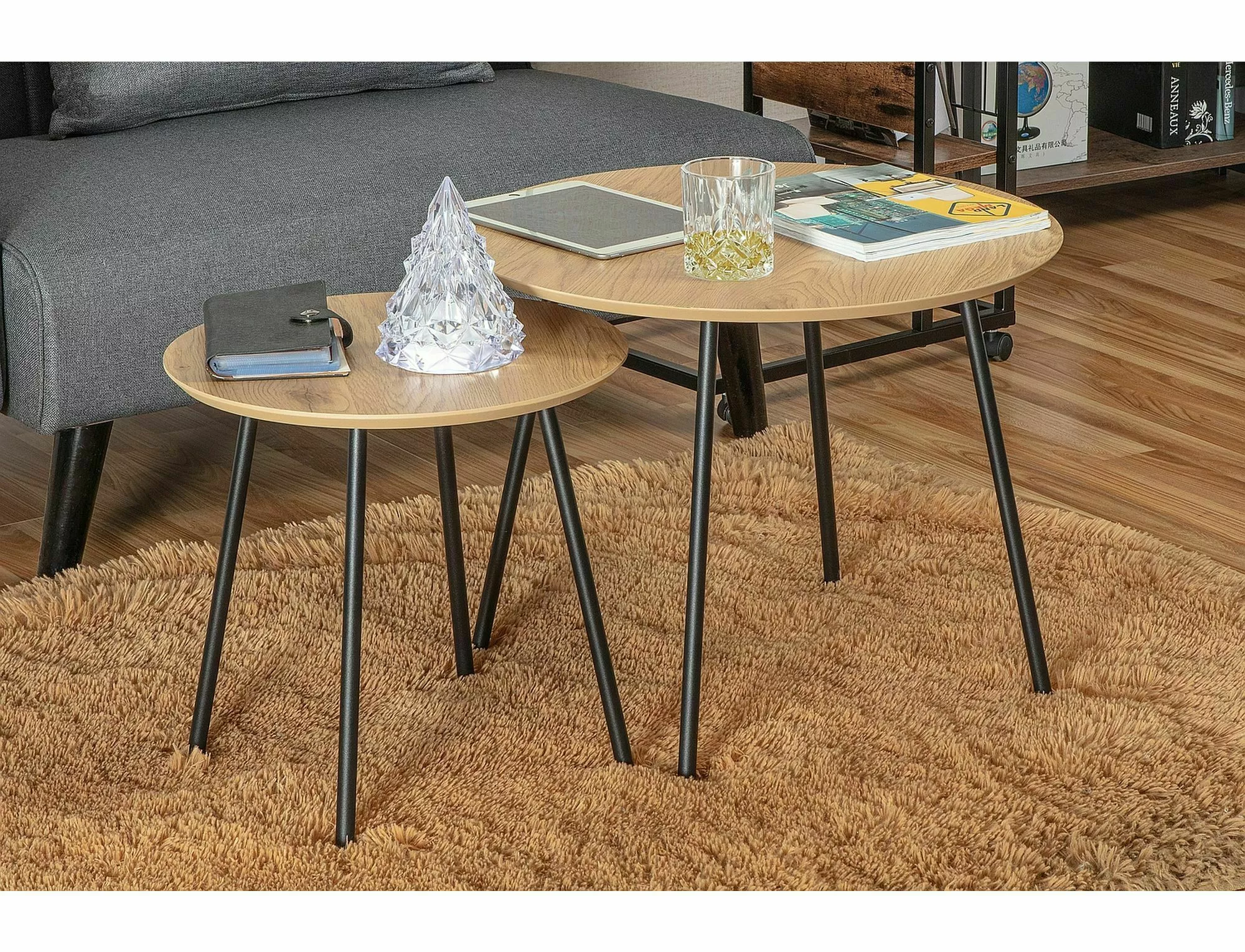Ława, blat: płyta laminowana, stelaż: metal, kolor: dąb / czarny mat.