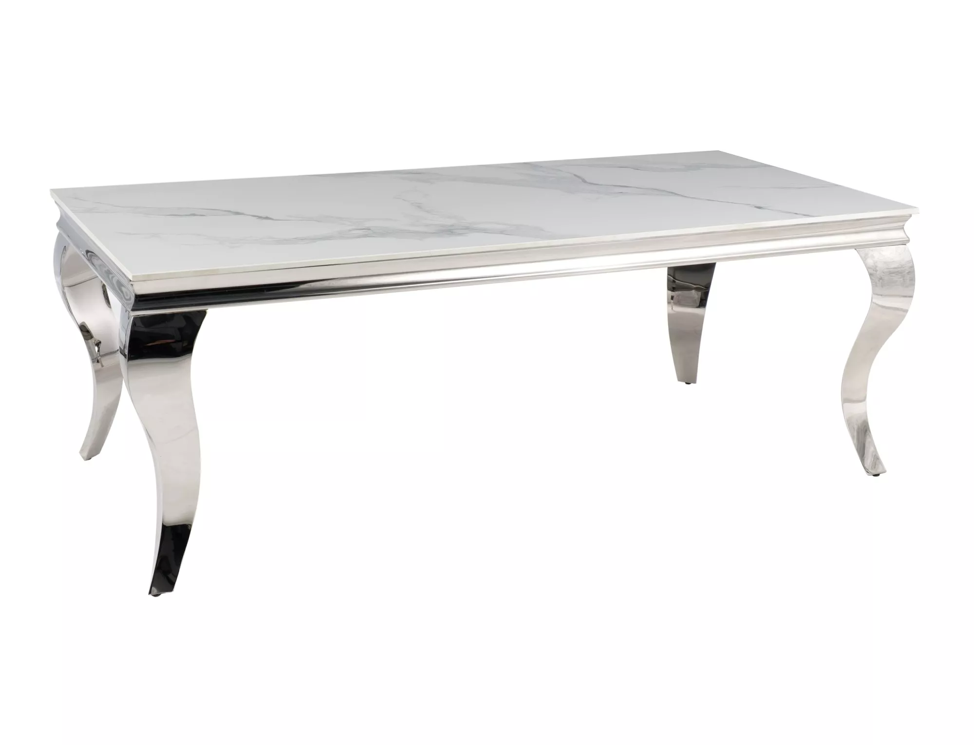 Ława, blat: ceramika CALACATTA, stelaż: stal nierdzewna, kolor: biały / chrom.