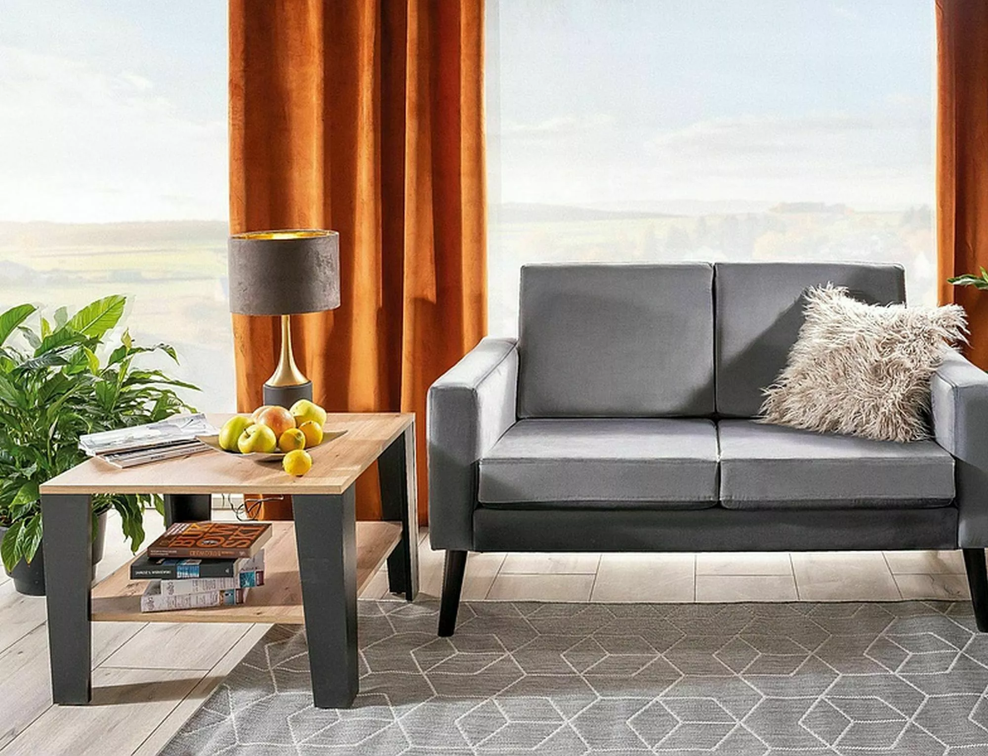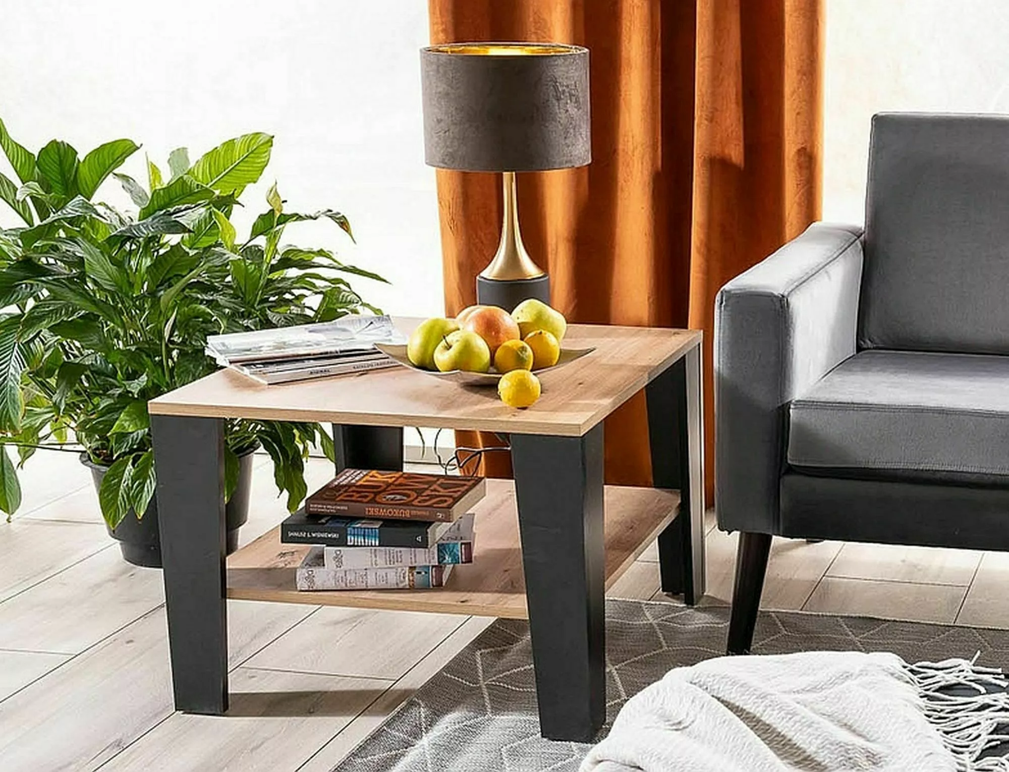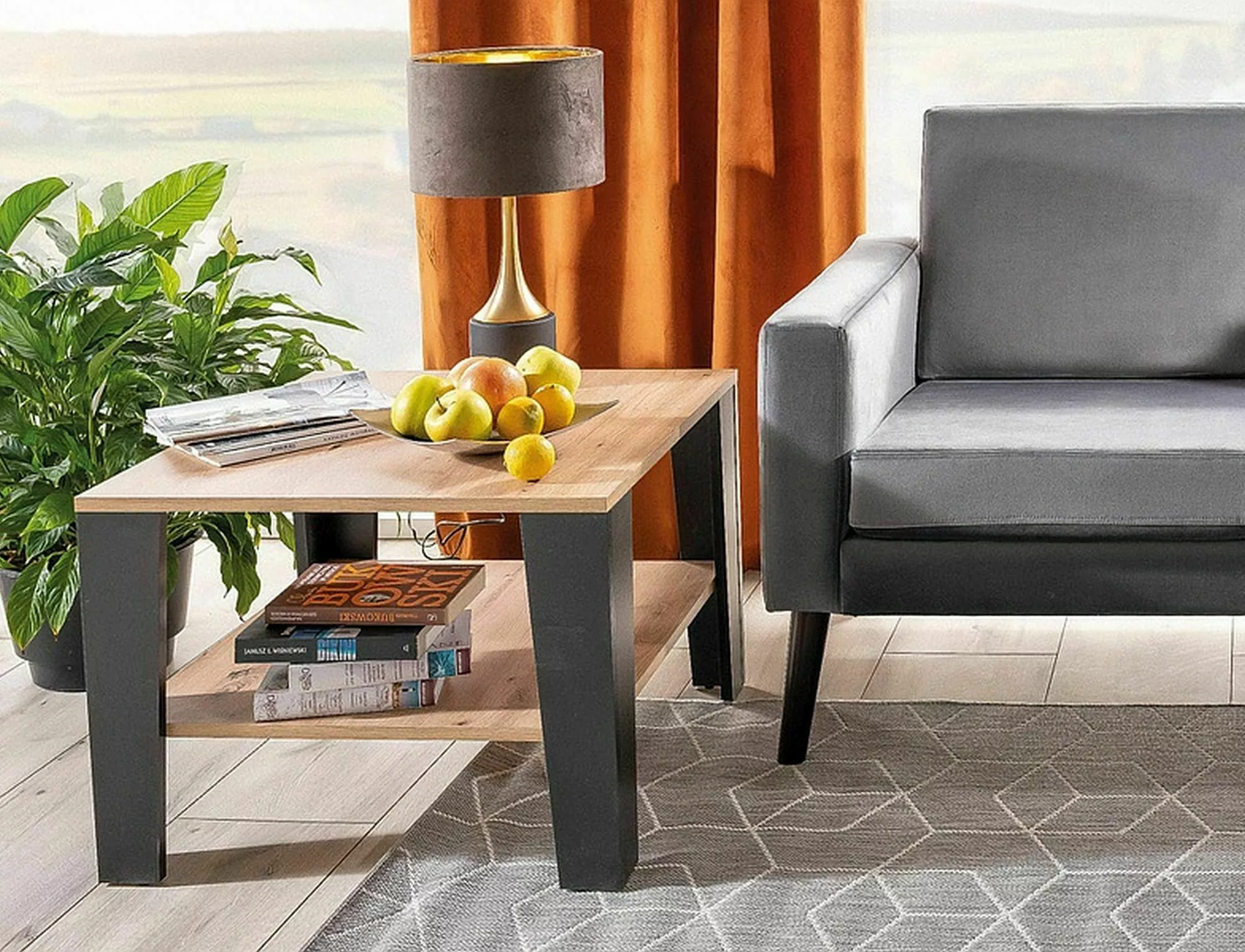 Ława, blat: płyta laminowana, stelaż: płyta laminowana, kolor: dąb wotan / czarny.