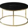 Ława, blat: szkło hartowane, stelaż: stal nierdzewna, kolor: czarny, efekt marmuru / złoty.