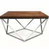 Ława, blat: MDF + okleina naturalna, stelaż: stal nierdzewna, kolor: orzech / srebrny.
