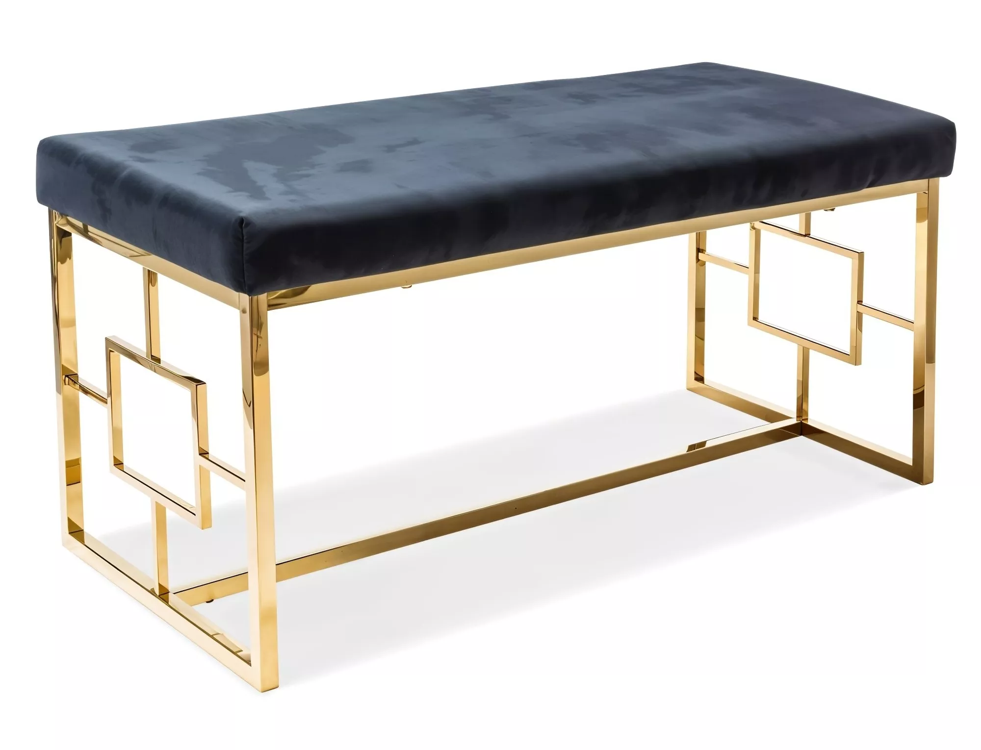 Ławka, tkanina aksamit, kolor: czarny, tap. 105 / metal, kolor: złoty.