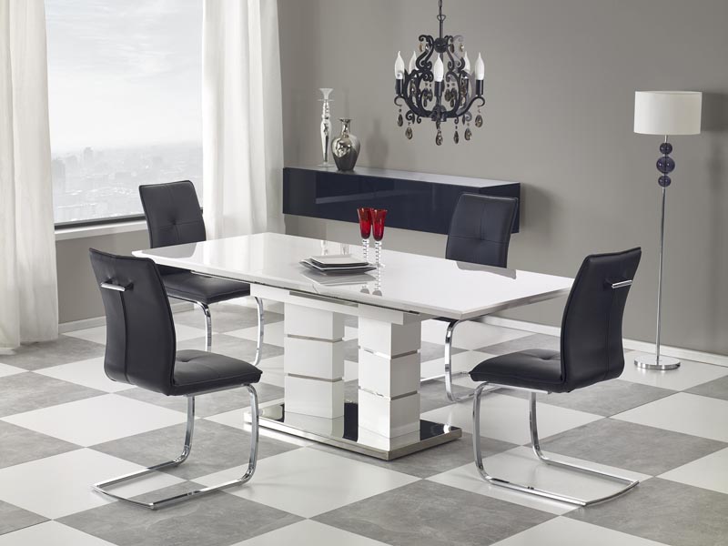 stół rozkładany, wymiary: 160÷200/90/75 cm, materiał: MDF lakierowany / stal nierdzewna, kolor: biały