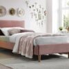 Łóżko, tkanina aksamit, kolor: antyczny róż, tap. Bluvel 52, zawiera w komplecie stelaż z listew giętych osadzonych w elastycznych uchwytach.