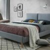 Łóżko, tkanina, kolor: szary, tap. 131. zawiera w komplecie stelaż z listew giętych osadzonych w elastycznych uchwytach.