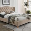 Łóżko, tkanina aksamit, kolor: beżowy, tap. Bluvel 28 Łóżko zawiera w komplecie stelaż z listew giętych osadzonych w elastycznych uchwytach. Wymiar materaca 160x200cm (cena bez materaca).