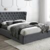 Łóżko, tkanina aksamit, kolor: szary, tap. Bluvel 14. Łóżko zawiera w komplecie stelaż z listew giętych osadzonych w elastycznych uchwytach. Wymiar materaca 160x200cm (cena bez materaca).