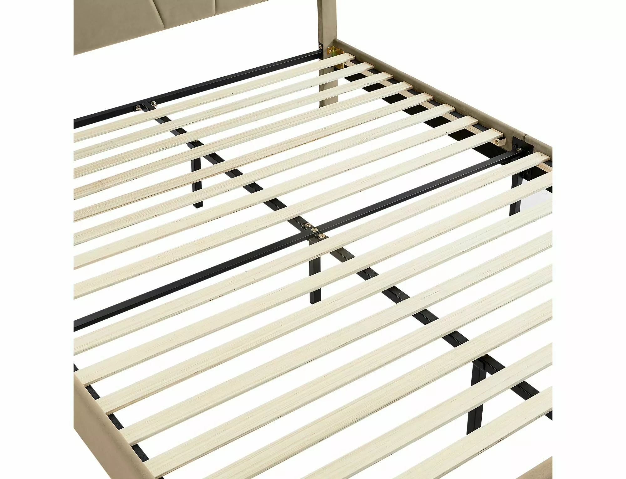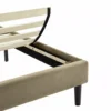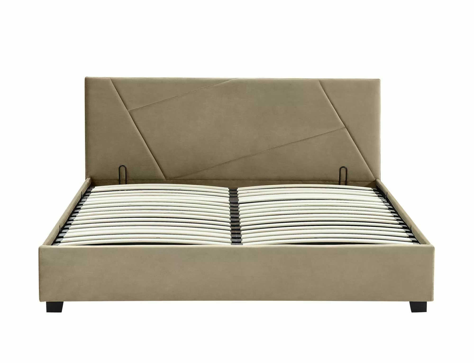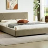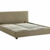 Łóżko z pojemnikiem, tkanina aksamit Bluvel, kolor: 28 beżowy. W komplecie stelaż z listew giętych osadzonych w elastycznych uchwytach. Gazowe siłowniki. Wymiar materaca 140x200cm (cena bez materaca).