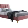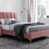 Łóżko, tkanina aksamit: antyczny róż, tap. 185 / metal, kolor: złoty. Łóżko zawiera w komplecie stelaż z listew giętych osadzonych w elastycznych uchwytach. Wymiar materaca 90x200cm (cena bez materaca).