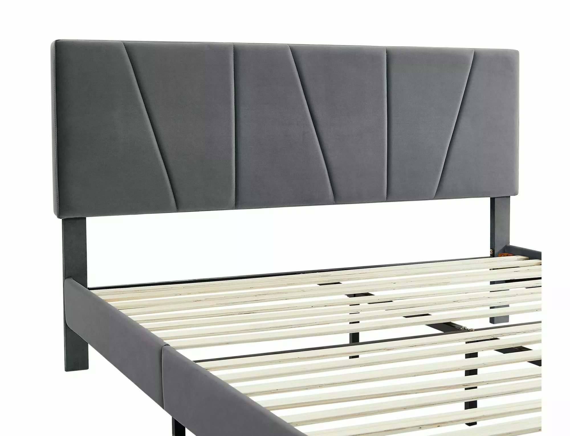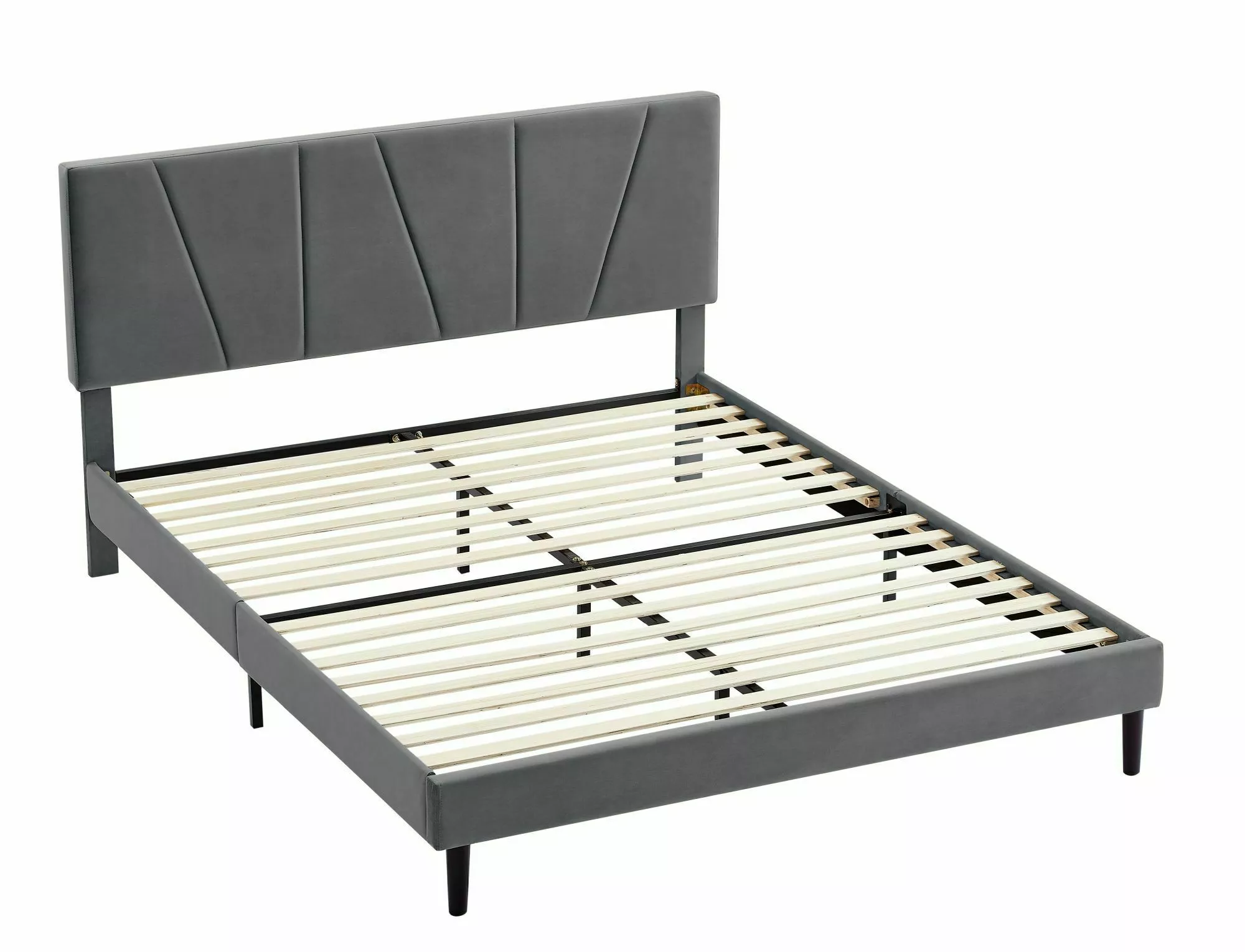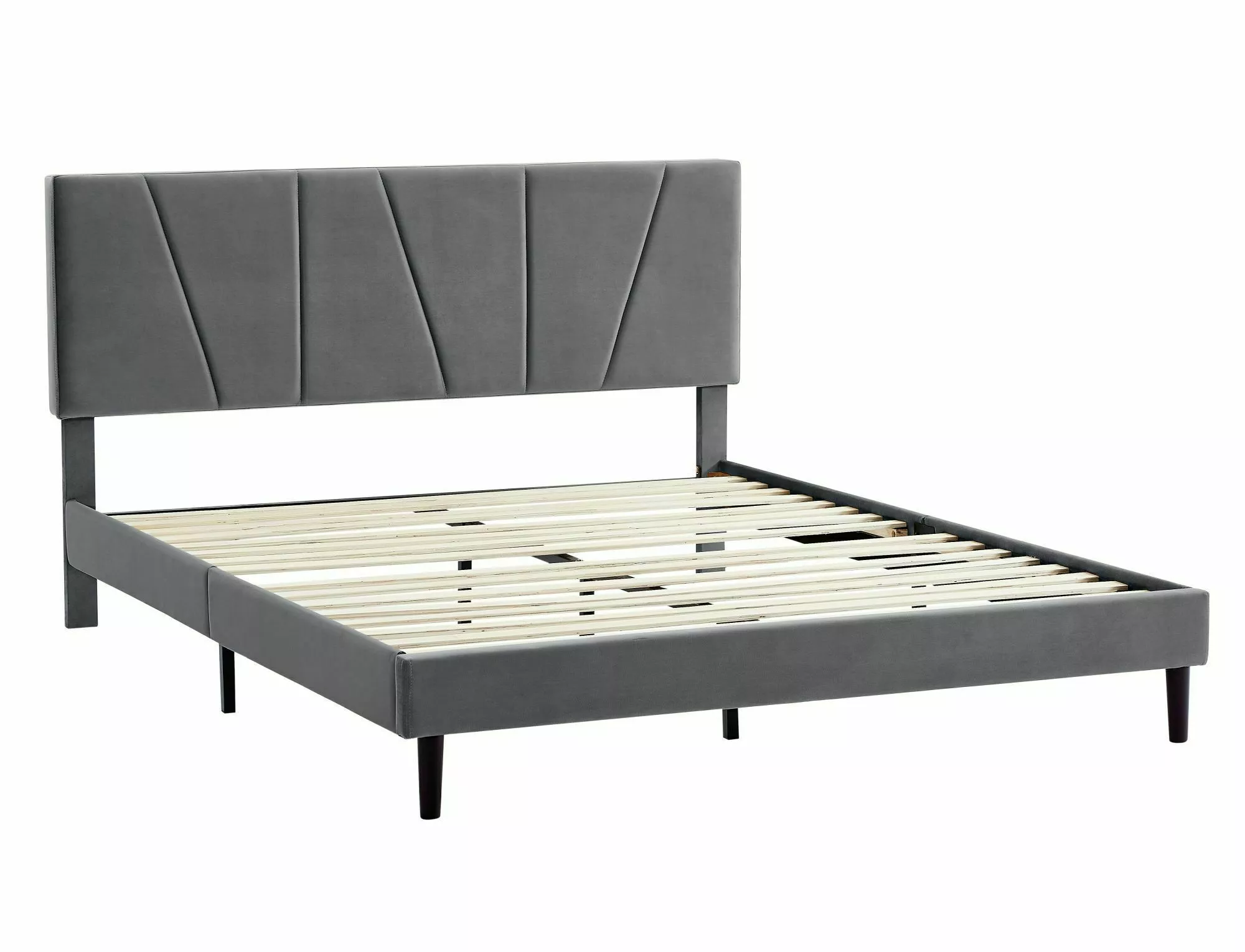 Łóżko, tkanina aksamit, kolor: tap.192 szary. W komplecie stelaż z drewnianych listew. Rozmiar materaca: 160x200cm (cena bez materaca).