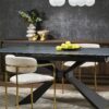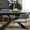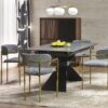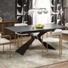 wymiary: 180-230/90/76/117 cm; stół rozkładany, materiał: ceramika / szkło / stal malowana proszkowo, kolor: blat – niebieski marmur, nogi – czarny