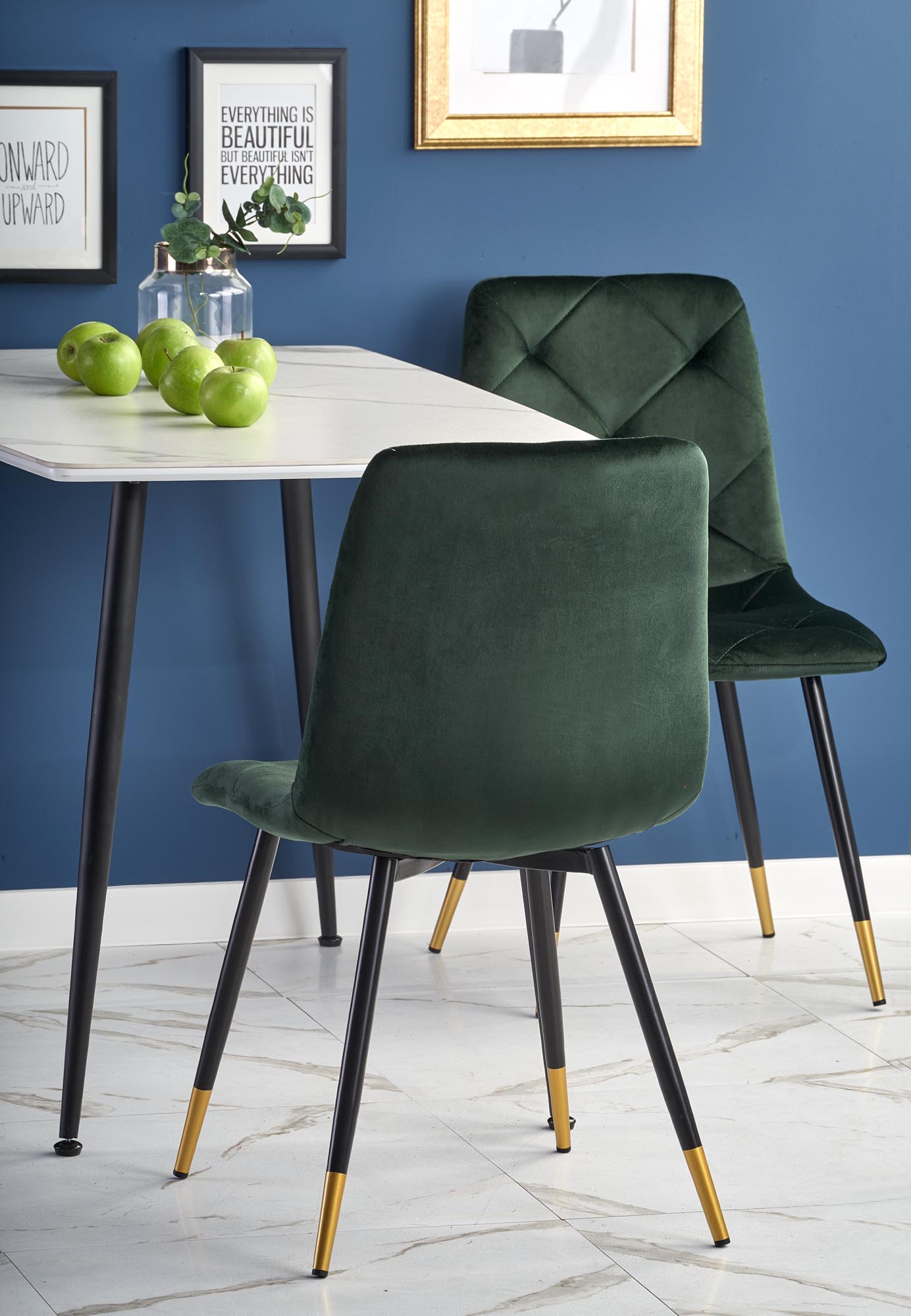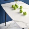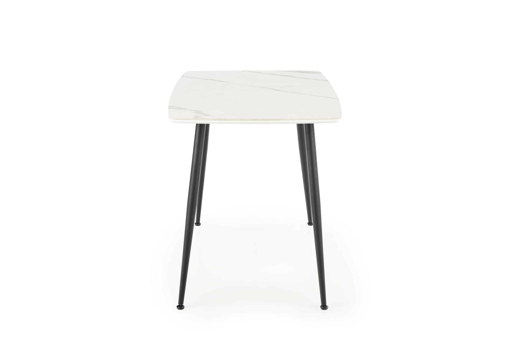 wymiary: 120/70/77 cm, materiał: spiek / MDF lakierowany / stal malowana proszkowo, kolor: blat – biały marmur, nogi – czarny