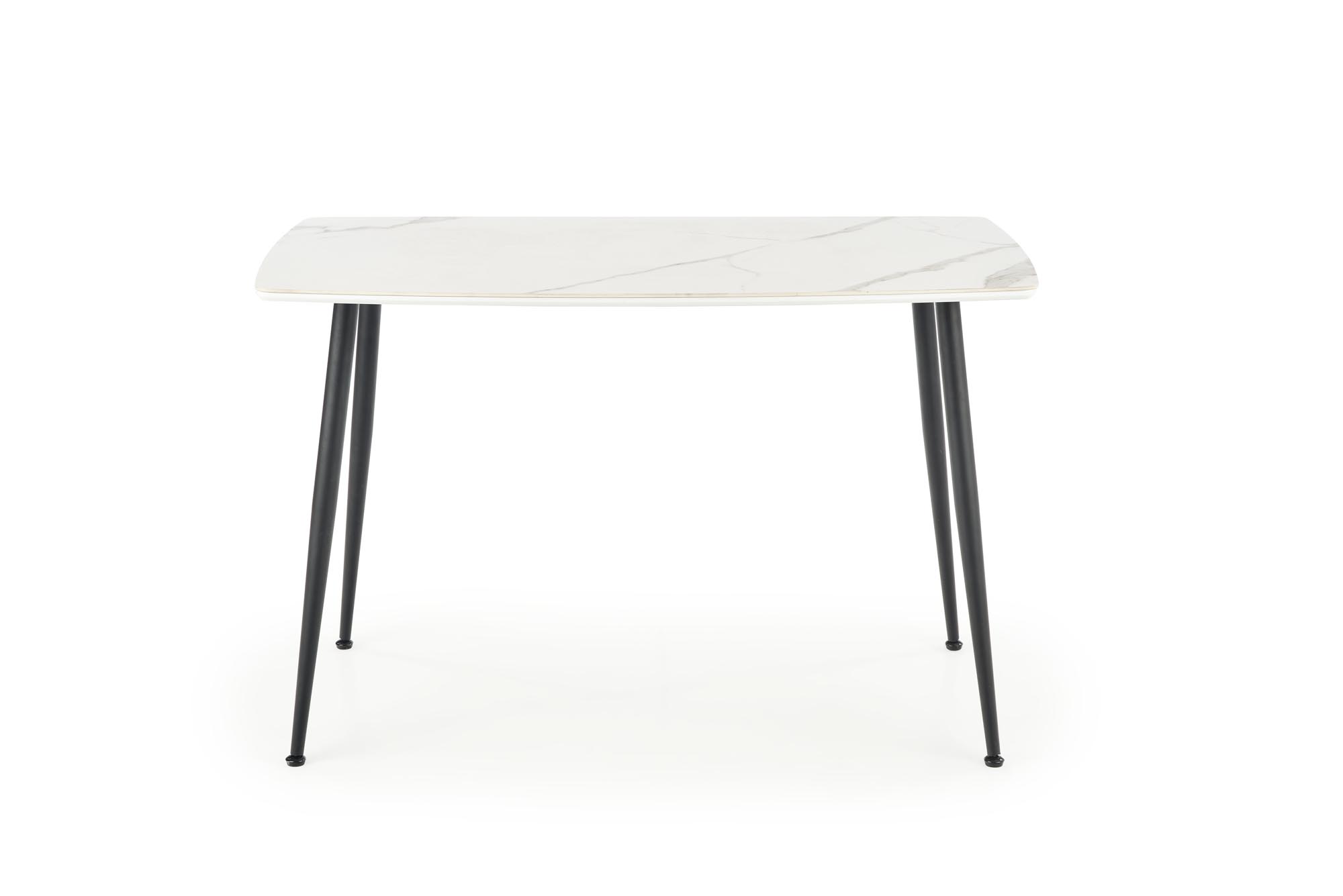 wymiary: 120/70/77 cm, materiał: spiek / MDF lakierowany / stal malowana proszkowo, kolor: blat – biały marmur, nogi – czarny